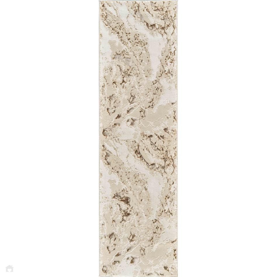 The Emperor 325 Picasso EMP25 Beige Runner brings a luxurious, contemporary statement to any interior with its layered marbled design and soft metallic sheen that subtly shifts with the light. The abstract pattern blends fluid streaks, weathered textures, and stone-like veining, creating a refined sense of depth, movement, and natural variation across the surface. This expressive detailing is elevated by a textured hi-low pile, giving the rug a tactile, sculptural dimension that feels modern, elegant, and beautifully soft underfoot. Expertly machine-woven in Turkey from a premium blend of polypropylene and polyester, the rug offers a super-soft 12 mm pile that delivers comfort while remaining durable, non-shedding, and easy to maintain. The light-reactive fibres allow the beige and taupe tones to appear lighter or darker depending on the viewing angle, adding gentle luminosity and a warm, atmospheric presence to any room. Ideal for living rooms, bedrooms, dining areas, and open-plan contemporary spaces, the Emperor Picasso Beige Rug offers a harmonious blend of comfort, understated luxury, and modern artistic character.