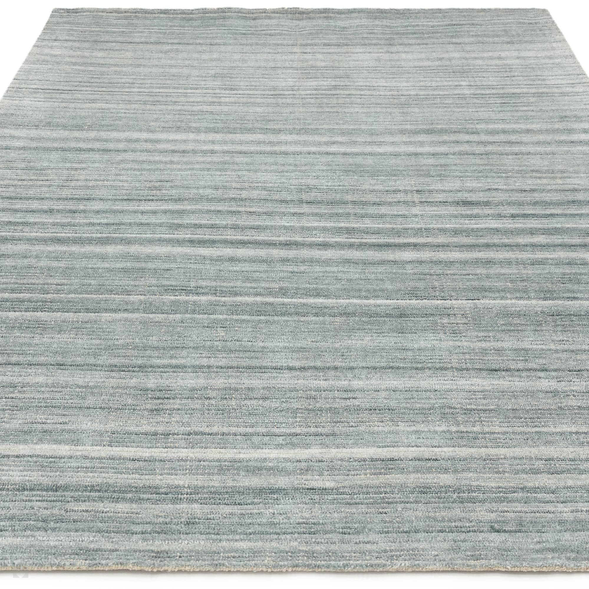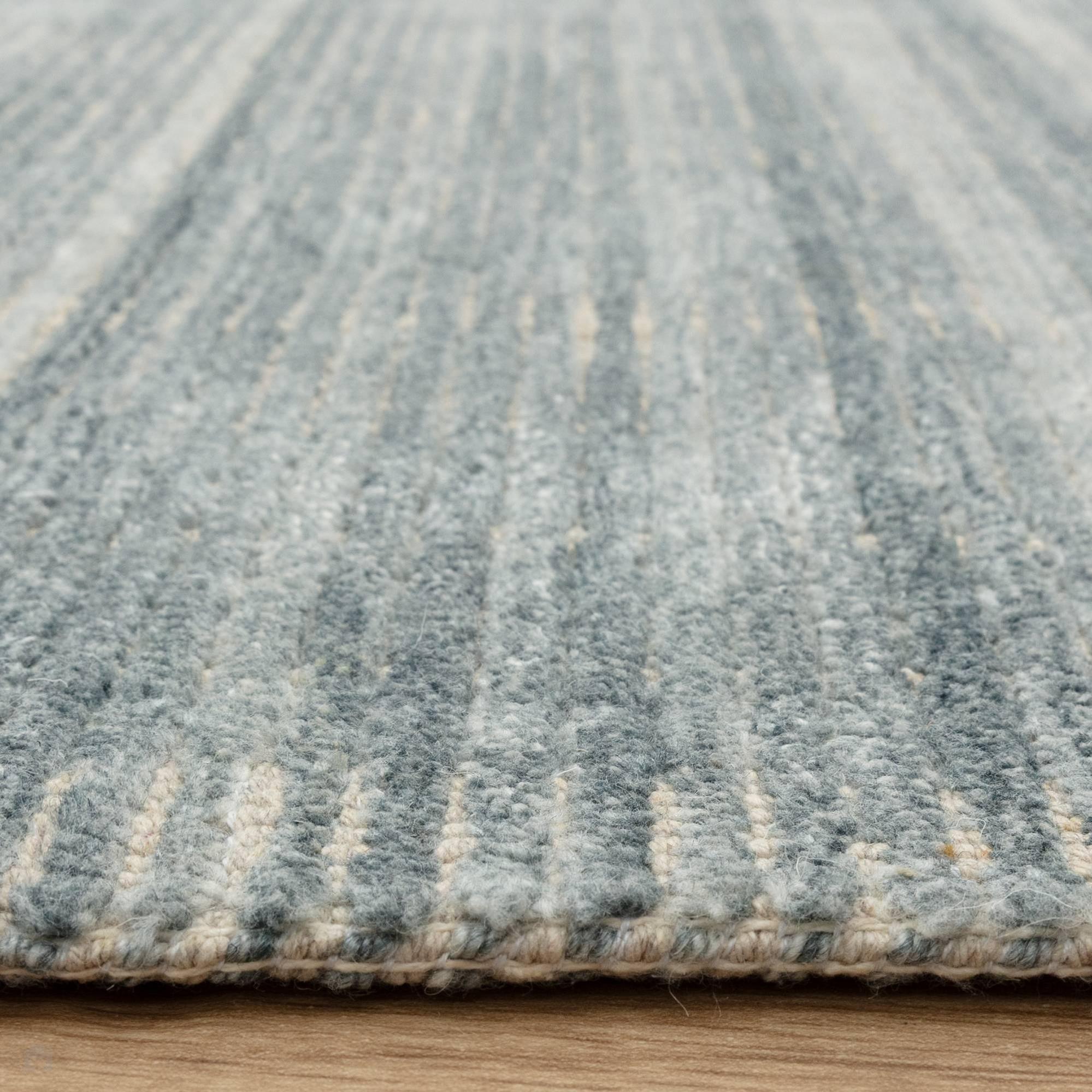Hand-woven in India from a refined blend of 45% polyester, 40% wool, and 15% cotton, the Hazy Sea Blue Rug combines modern craftsmanship with a naturally relaxed aesthetic. Its alternating loop and cut pile construction forms a subtly ribbed surface, finished with tip-shearing to create a gently distressed, lived-in texture. The flatweave-style low pile offers practicality underfoot, while the tonal shading of soft blues and neutrals gives the piece a calm, coastal-inspired feel.