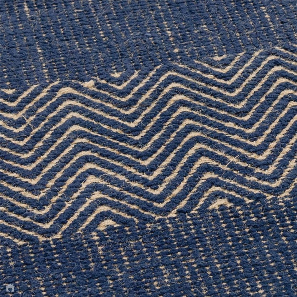 Natural Jute Beige – Interwoven through the chevron pattern, balancing the bold blue with earthy warmth and organic texture.