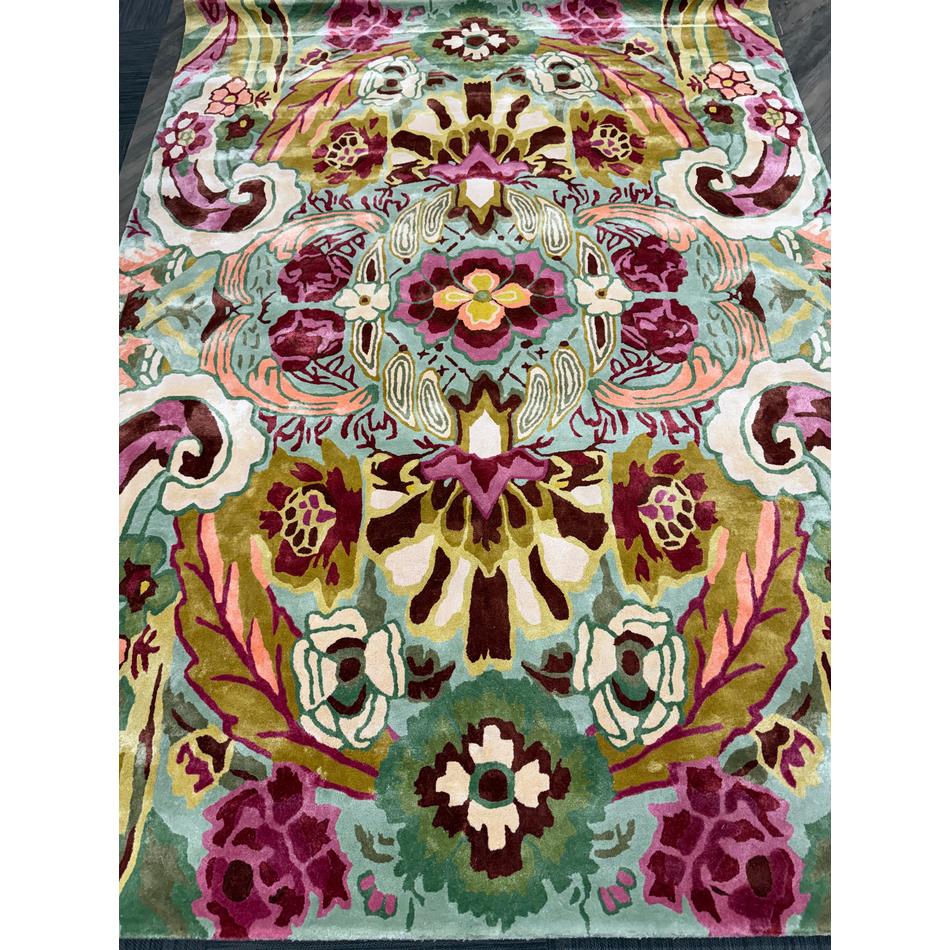 Hand tufted by artisans in India, the Katherine Carnaby Historia Rug is a true work of art, inspired by traditional thangka paintings. Taking months to complete, this masterpiece requires the collaboration of more than 50 skilled individuals, each contributing their expertise to create its intricate detail. Every pinprick of colour is carefully hand-tufted, resulting in a vibrant, captivating rug that commands attention. The design features a tropical, botanical scene of vivid florals and ornate scrollwork, bringing movement, energy, and elegance into any interior space.