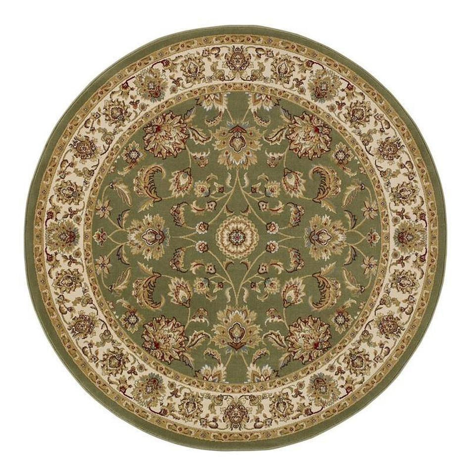 The Kendra 3330G Traditional Round Rug in Green showcases timeless Persian-inspired elegance with its ornate floral detailing and classic bordered design. Part of the Kendra Collection, this rug is machine-woven in Egypt from heatset polypropylene, producing a dense 0.8cm low-profile short pile that is soft underfoot, stain-resistant, and hard-wearing. The traditional pattern is framed by a richly detailed border, making this rug a versatile centrepiece for living rooms, dining areas, or bedrooms. Its low-profile design ensures easy furniture placement and smooth door clearance, blending practicality with beauty.