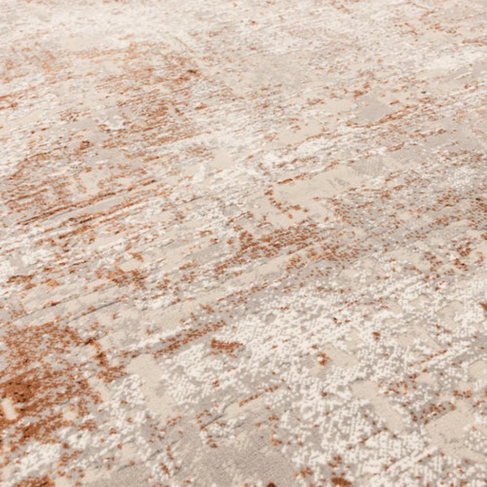 The Kuza Border Modern Distressed Rug in Terracotta, Light Grey, and Cream offers a 1.1 cm hi-lo textured pile with a soft-touch finish and a delicate shimmer, combining comfort and style. Its warm terracotta border and neutral centre make it a striking yet versatile piece, perfect for living rooms, bedrooms, dining spaces, or office areas. The distressed abstract design adds character and sophistication, making this rug a timeless choice for modern homes.
