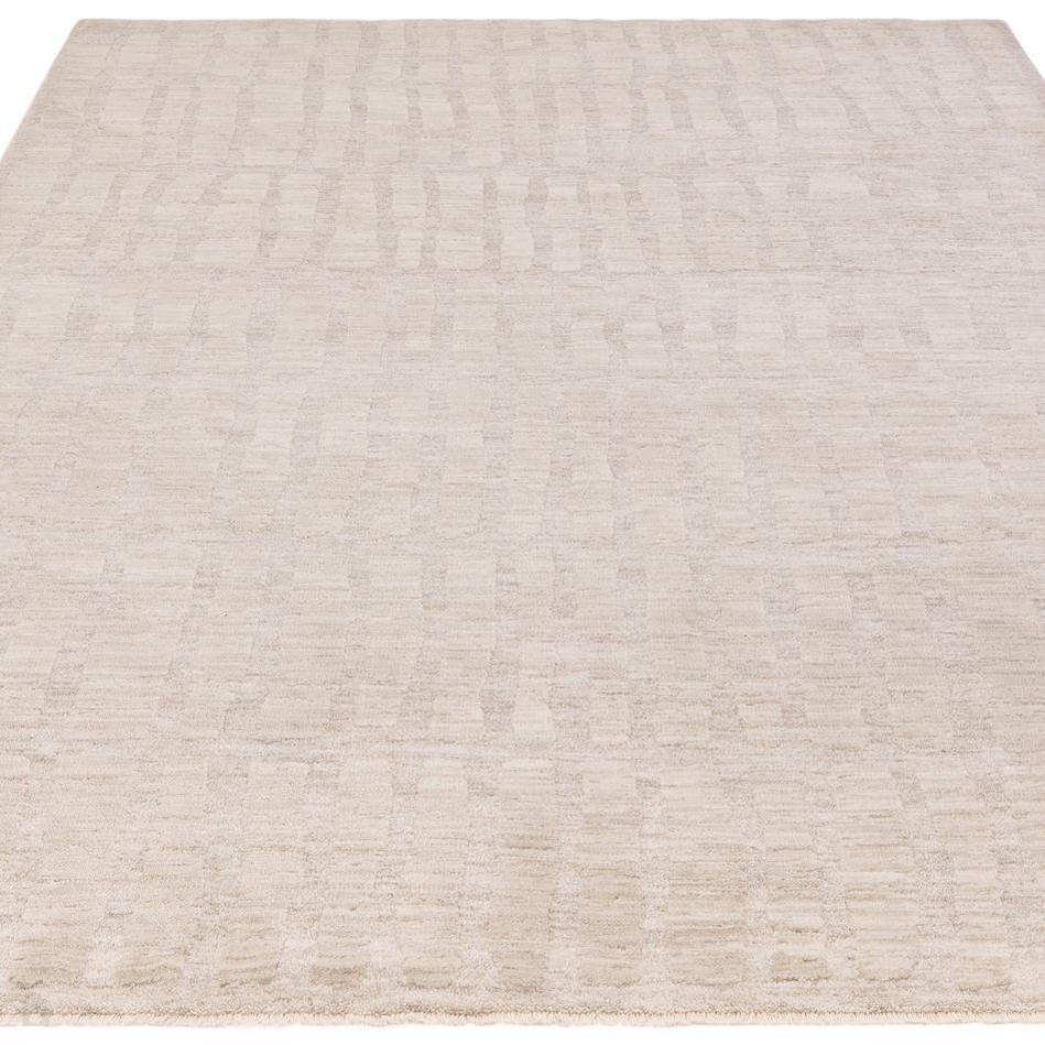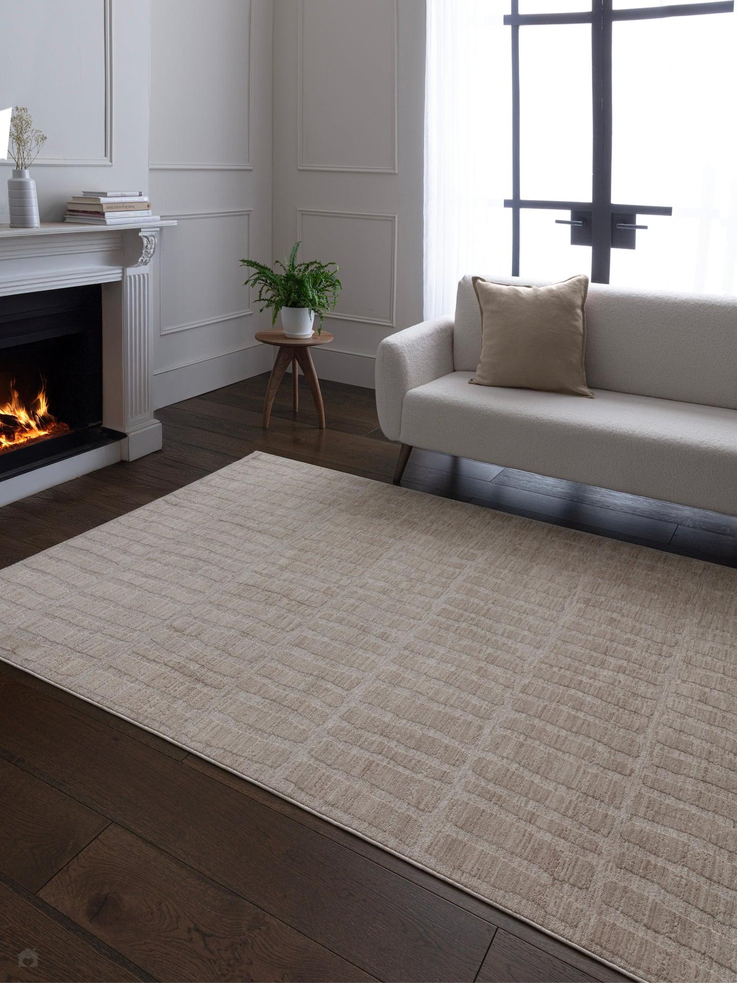 This rug features a soothing palette of Warm Beige, Light Cream, and Taupe Grey, subtly layered through a low-profile, dense pile with a soft-touch finish. The abstract rectangular pattern adds a contemporary edge, while the space-dyed technique creates tonal depth and visual softness. With its muted tones and geometric relief, this design is ideal for modern, minimalist, or Scandinavian-style interiors, bringing warmth and texture without overpowering the space.