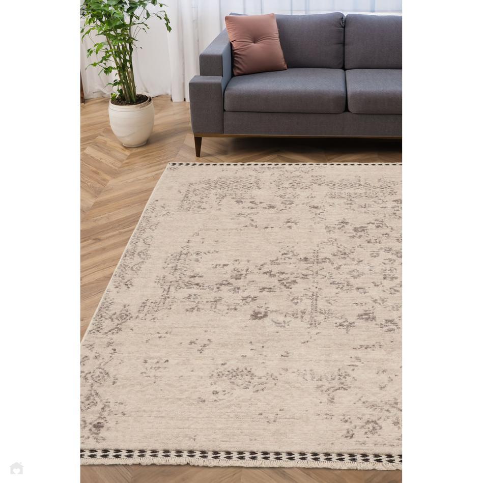 The Mateo collection integrates soft polyester yarn with microloops in an innovative 8mm weaving construction. Finished with a cotton self-fringe that creates a unique vintage look inspired by authentic handmade Persian patterns.
