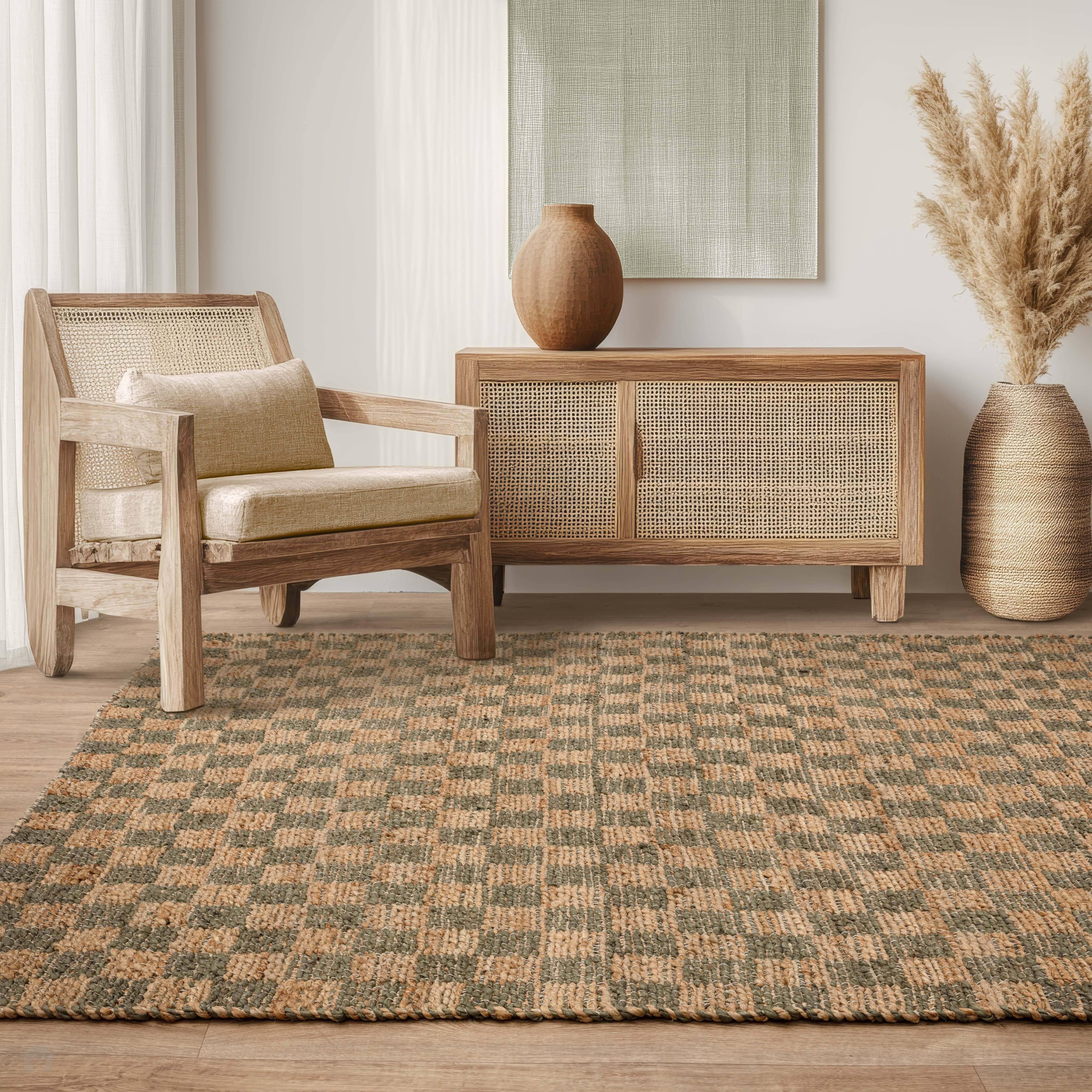 Naturi reimagines classic jute with a fresh design twist, featuring a checkerboard pattern.
