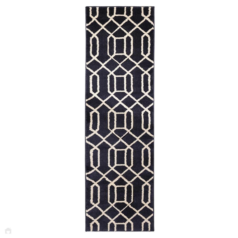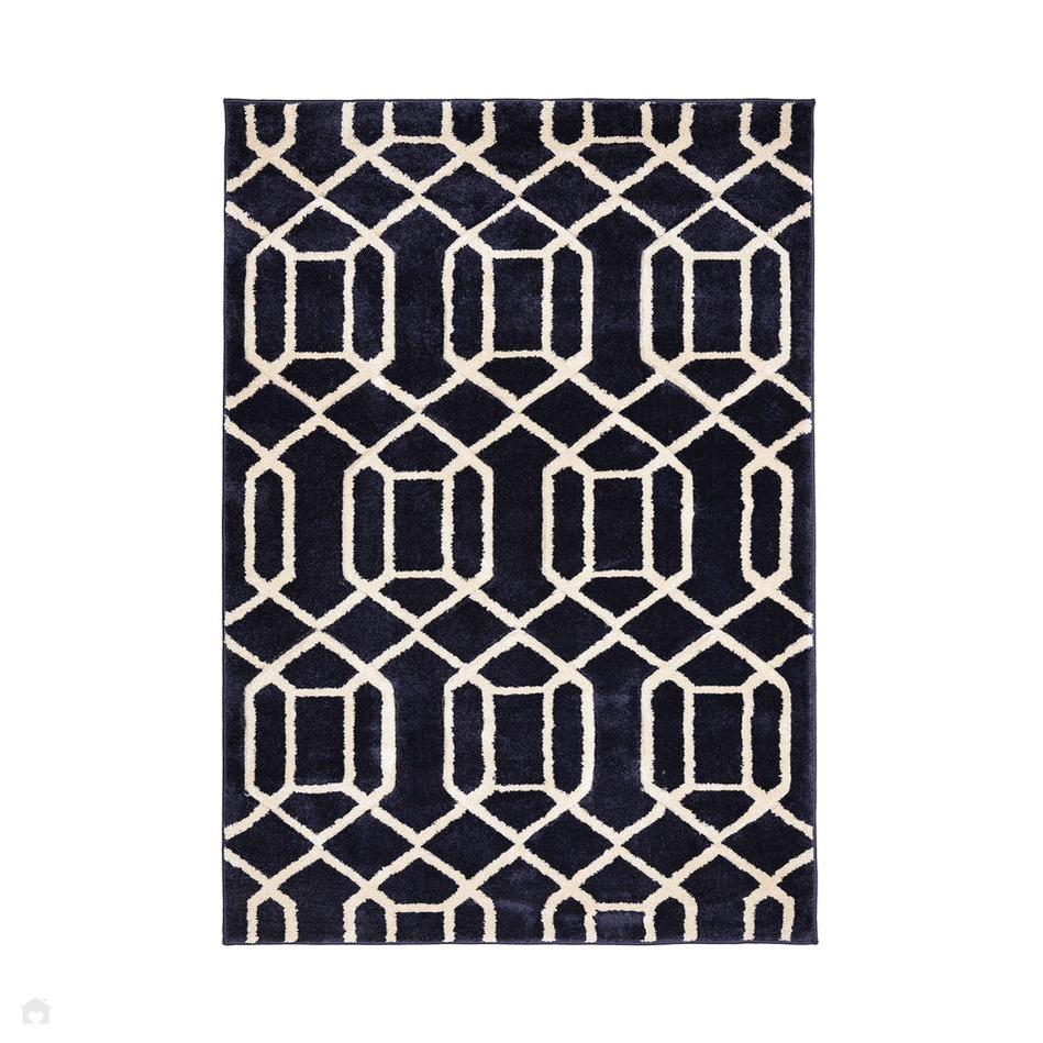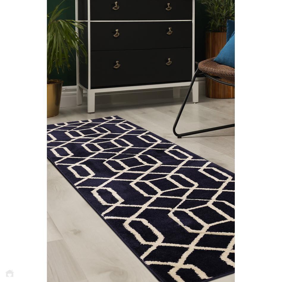 The Newport Lattice Navy Runner combines Navy Blue, Midnight Indigo, and Ivory tones within a bold, hand-carved geometric pattern. The 13mm short pile and machine-woven polypropylene composition offer a perfect blend of softness and practicality. Ideal for living rooms, dining areas, and hallways, this rug enhances interiors with its rich, modern palette and crisp architectural detailing — a statement piece that exudes both elegance and everyday durability.