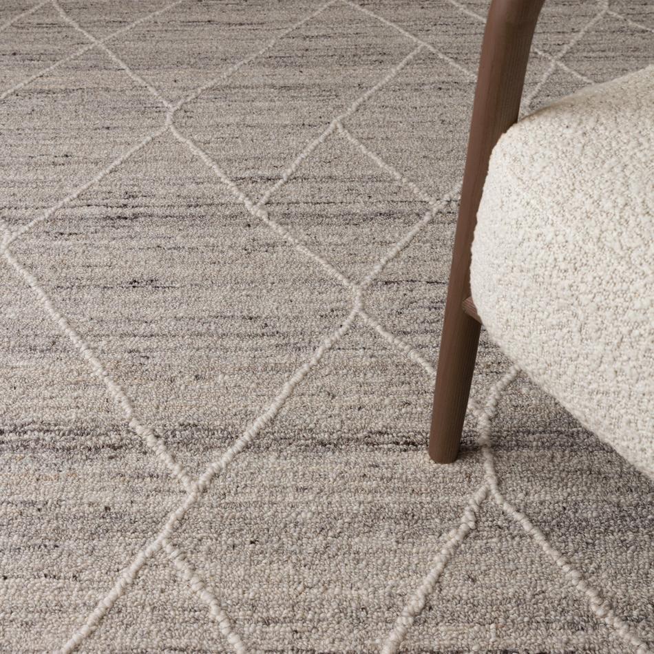 The Noah Hand-Tufted Wool Rug in Silver offers a serene and contemporary take on the classic Moroccan Berber style. Featuring a soft silver-grey base with contrasting charcoal accents and a crisp ivory diamond lattice pattern, this rug blends organic texture with modern sophistication. Handcrafted from pure, undyed 100% wool, it boasts a naturally soft and insulating feel underfoot. The 8–12 mm hand-tufted pile height and subtle tonal variations create a rich, hazy finish that brings depth and warmth to any interior.