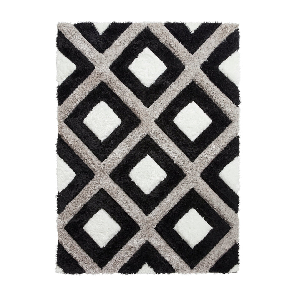 The Olympia GR224 Black/White/Grey Rug combines Jet Black, Neutral Grey, and White in a dramatic 3D geometric diamond pattern that defines contemporary style. The interplay of dark and light tones adds visual movement, while the plush 4 cm shaggy hi-lo pile ensures an indulgent softness underfoot. The hand-carved detailing enhances the sculptural effect, and the metallic polyester fibres introduce a light-reflective shimmer that elevates the overall look.