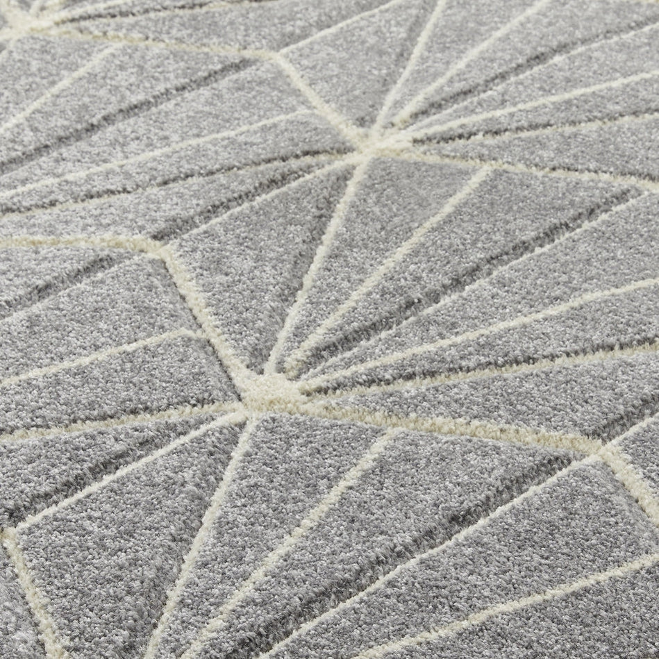 Add a modern touch to your home with the Portland 750-N Rug, featuring a geometric carved pattern in a versatile grey and cream colourway. The carved effect creates a subtle 3D texture, giving this rug a sense of depth while remaining easy to style with a wide range of interiors.