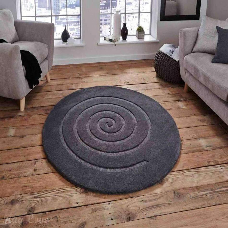 The Spiral Hand-Tufted Circular Wool Rug in Grey is a sophisticated statement piece, designed to add texture and elegance to any modern interior. Its unique circular shape and spiralling line design create a contemporary focal point that draws the eye and enhances the flow of your space.