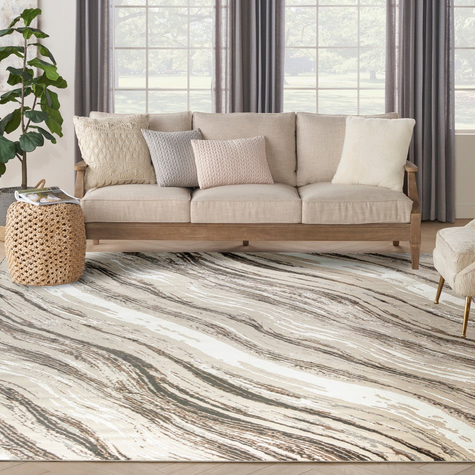 The Sustainable Trends SUT05 Beige/Cream Runner presents a harmonious composition of Beige, Cream, and Taupe, accentuated by Charcoal Grey, Stone Grey, and Rust Brown. Its marble-like flowing design adds natural movement and dimension, while the neutral palette ensures timeless versatility across multiple decor styles.