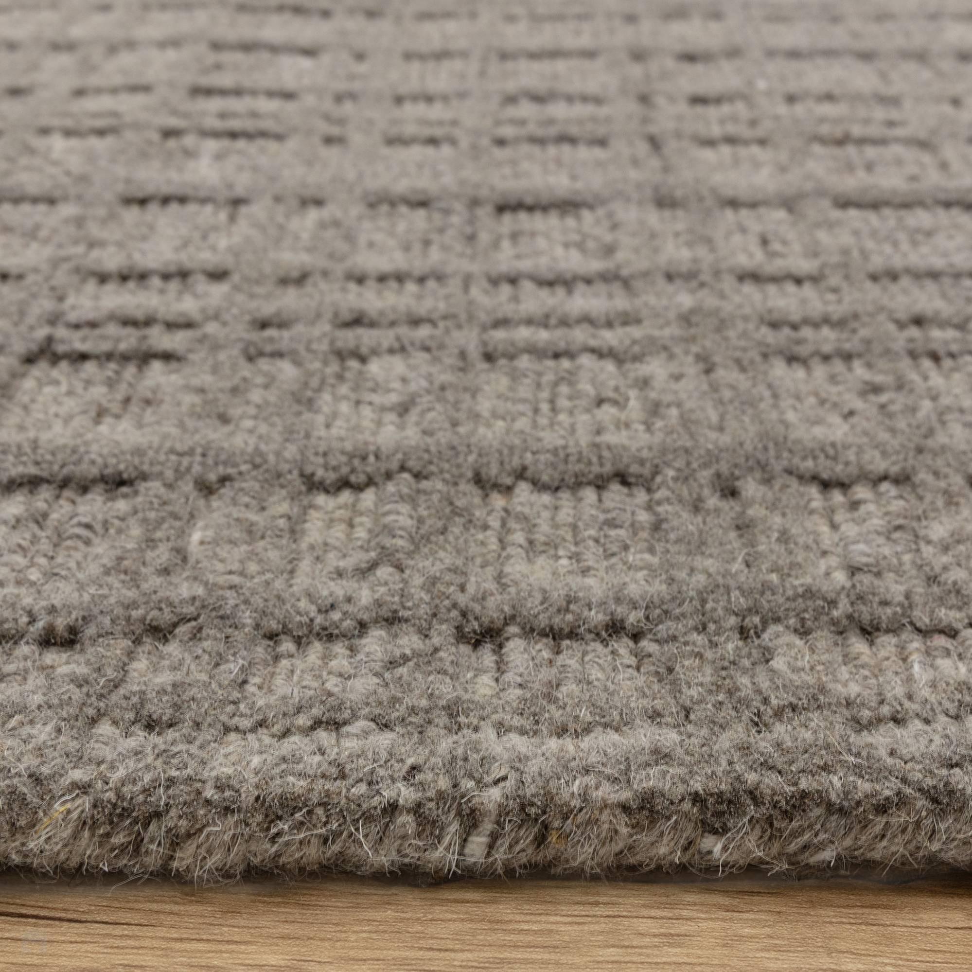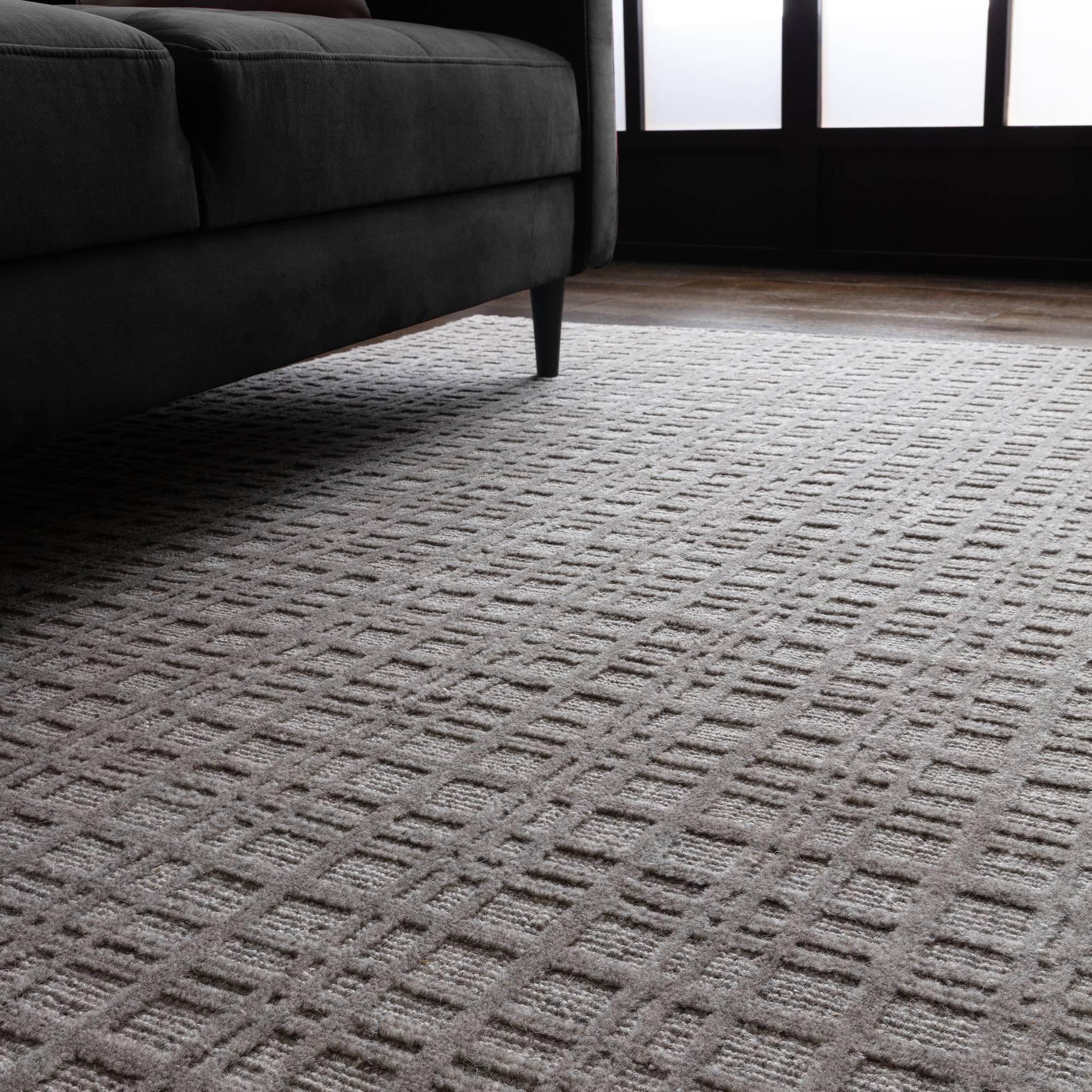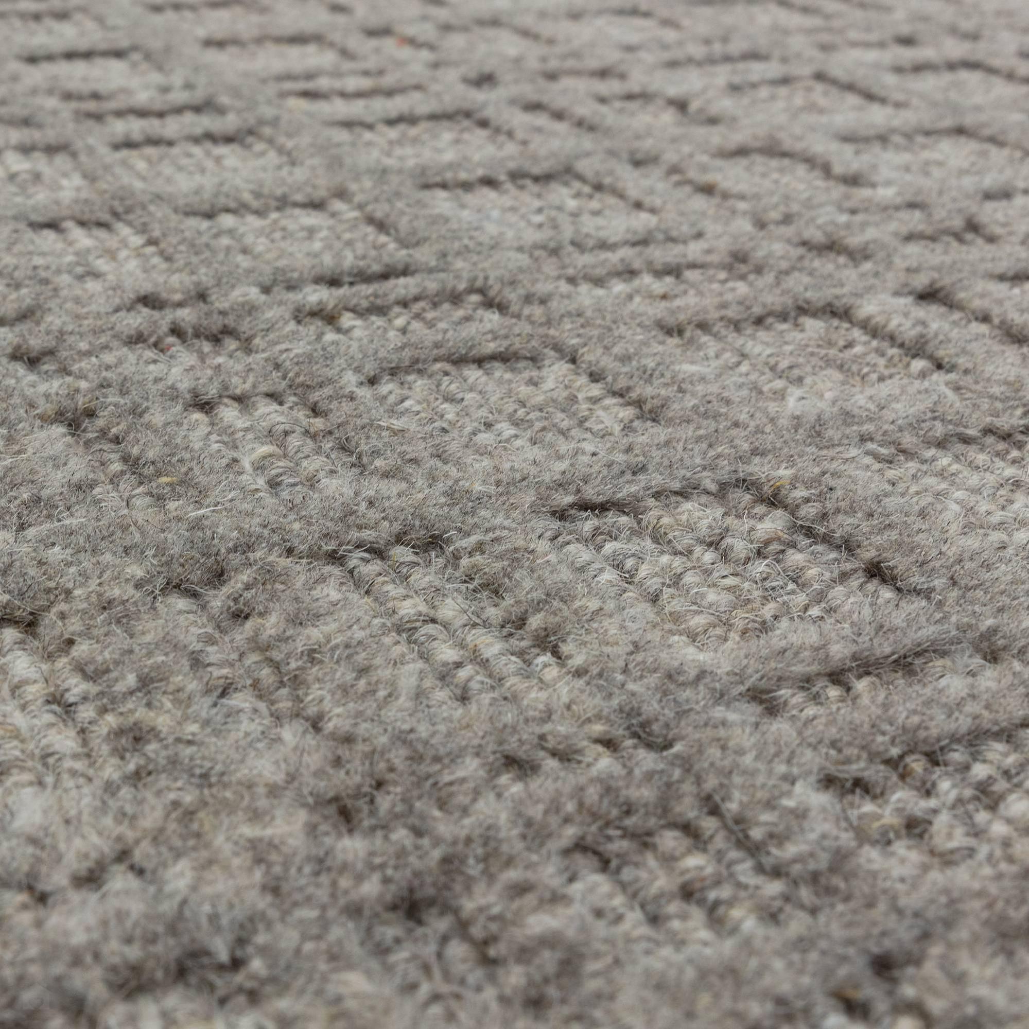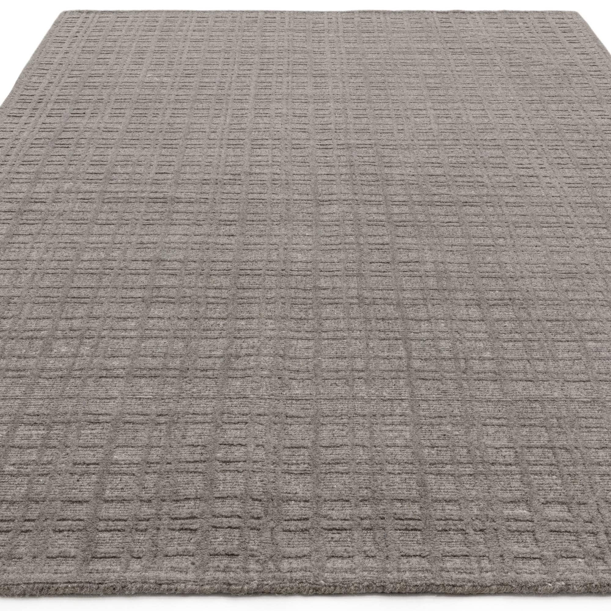 The Thatch Taupe Stone Wool Rug showcases a beautifully balanced geometric grid pattern, defined by a hi-low pile construction that adds dimension and tactility. Featuring a ribbed loop pile base with a cut pile overlay grid, the contrasting textures create a subtle yet striking surface detail. Hand woven in India from undyed wool, it celebrates the natural tonal variations of the fibre, offering an organic, modern aesthetic. With its low profile and structured form, this rug blends artisanal craftsmanship with refined simplicity, making it an elegant addition to both contemporary and neutral interiors.