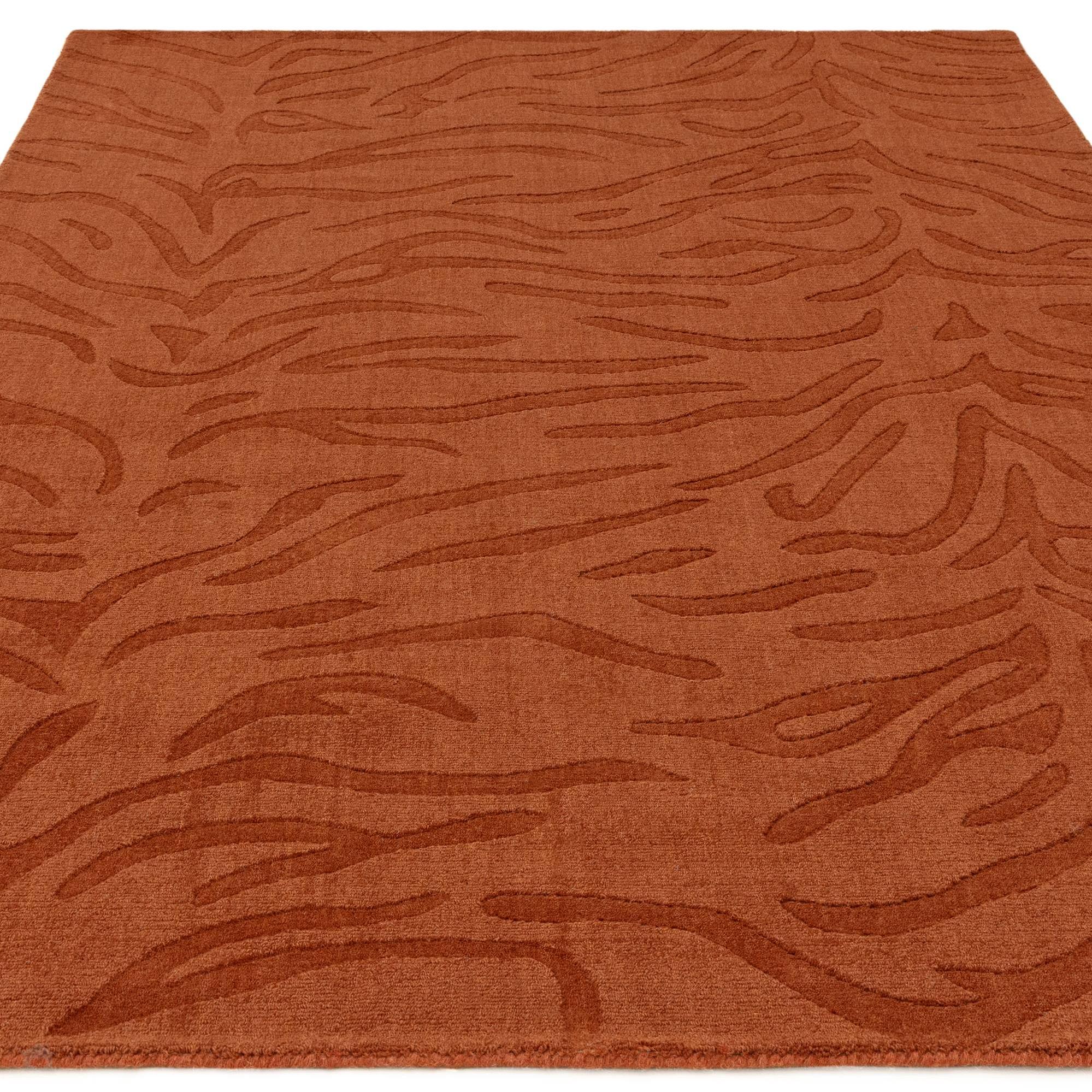 The Tigra Spice Wool Rug is a beautifully hand-crafted piece featuring a cut and loop high-low pile that brings its animal-inspired pattern to life through texture and tone. The interplay of Spice Orange, Burnt Terracotta, Copper Brown, and Amber Clay creates a harmonious and refined aesthetic, while the 100% wool composition ensures softness and durability. With its 8mm low-profile pile and carved ribbed texture, this rug adds understated luxury to living rooms, bedrooms, or dining areas — perfect for those seeking warmth, sophistication, and natural character in their décor.