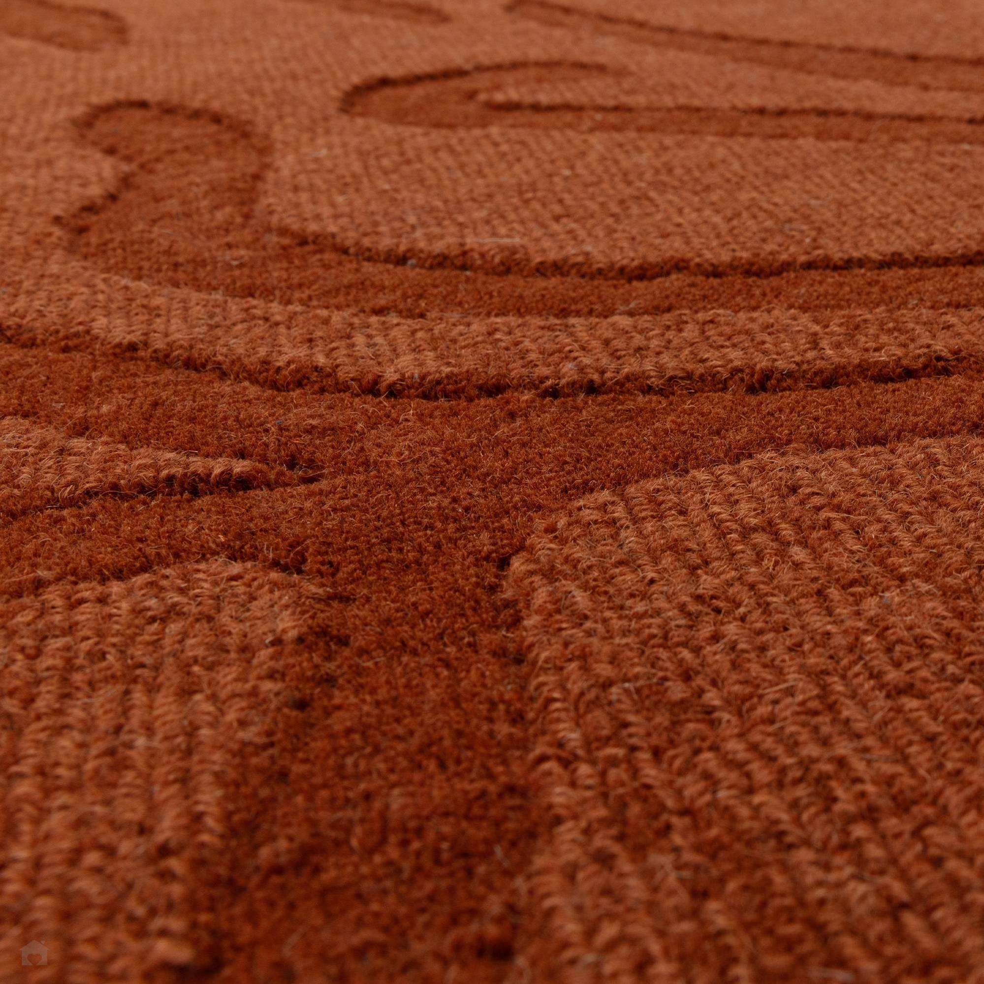 Hand-woven in India from 100% pure wool, the Tigra Spice Wool Rug combines a contemporary animal-inspired design with a tactile, sculpted surface. Its cut and loop pile construction creates a subtle high-low carved texture, where the raised cut pile forms the pattern against a ribbed loop background. With an 8mm low-profile pile and a 2kg per m² wool weight, this rug offers natural softness, resilience, and warmth — ideal for both modern and classic interiors. While the Tigra Spice Wool Rug features a deeper carved cut-pile pattern raised above a ribbed loop background for stronger contrast and definition, the Tigra Sand and Tigra Mocha versions reverse this effect, using a looped ribbed pattern over a smoother cut-pile base to create a softer, more understated texture.