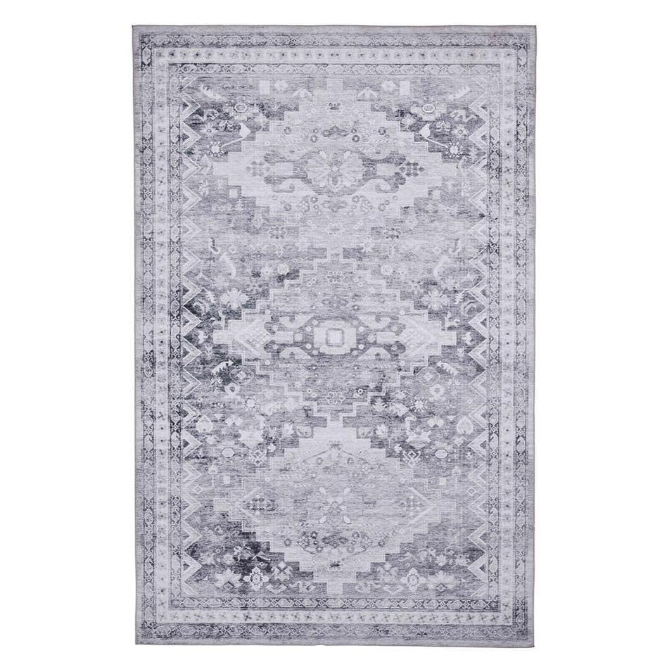 The Topaz H1265 Grey/Cream Rug blends timeless tradition with modern practicality. Featuring an intricate medallion and border pattern with a distressed vintage finish, it creates a soft yet characterful focal point for any room. Crafted in China using a digitally printed technique on a 100% polyester chenille base, this rug is lightweight, durable, and easy to handle. With its 0.2cm flatweave construction, it sits low to the floor like a mat, making it ideal for high-traffic areas, homes with pets, or spaces where a slim profile is preferred. Despite its thin structure, the chenille surface ensures a soft touch underfoot while maintaining resilience for everyday living.
