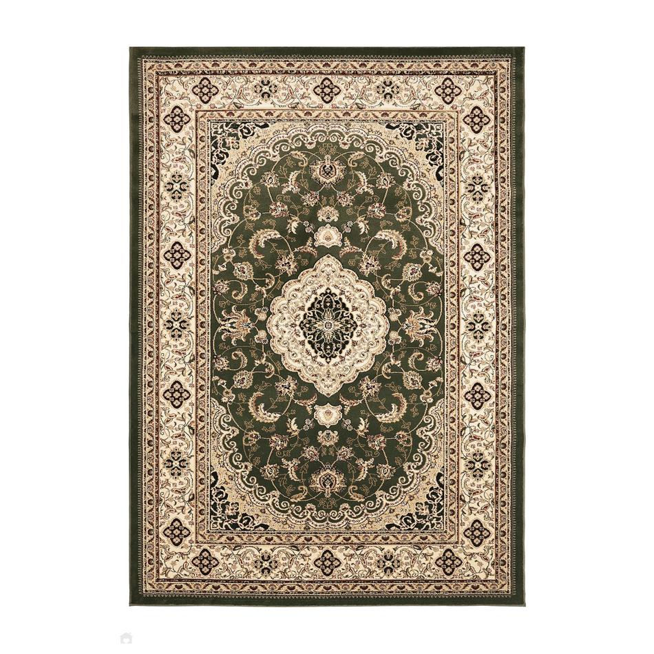 The Victoria Traditional Green Rug offers a timeless traditional design woven with an intricate medallion border, enhanced by a 13mm carved hi-low pile for added depth and texture. Made from 100% polypropylene, it is non-shedding, durable, stain resistant, and easy to care for, making it an excellent choice for everyday living. Crafted using machine-woven construction with hand-carved detailing, it delivers both beauty and performance. Backed with jute, this rug is stable and long-lasting, while remaining soft underfoot and ideal for high-traffic areas.