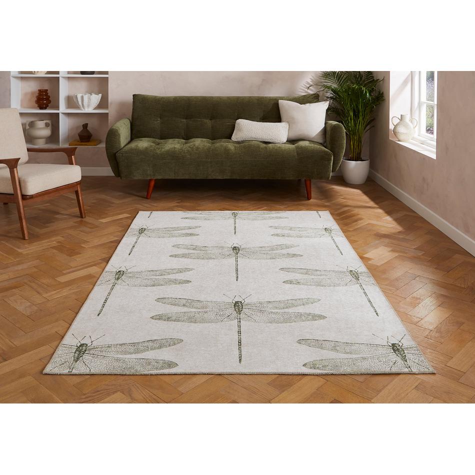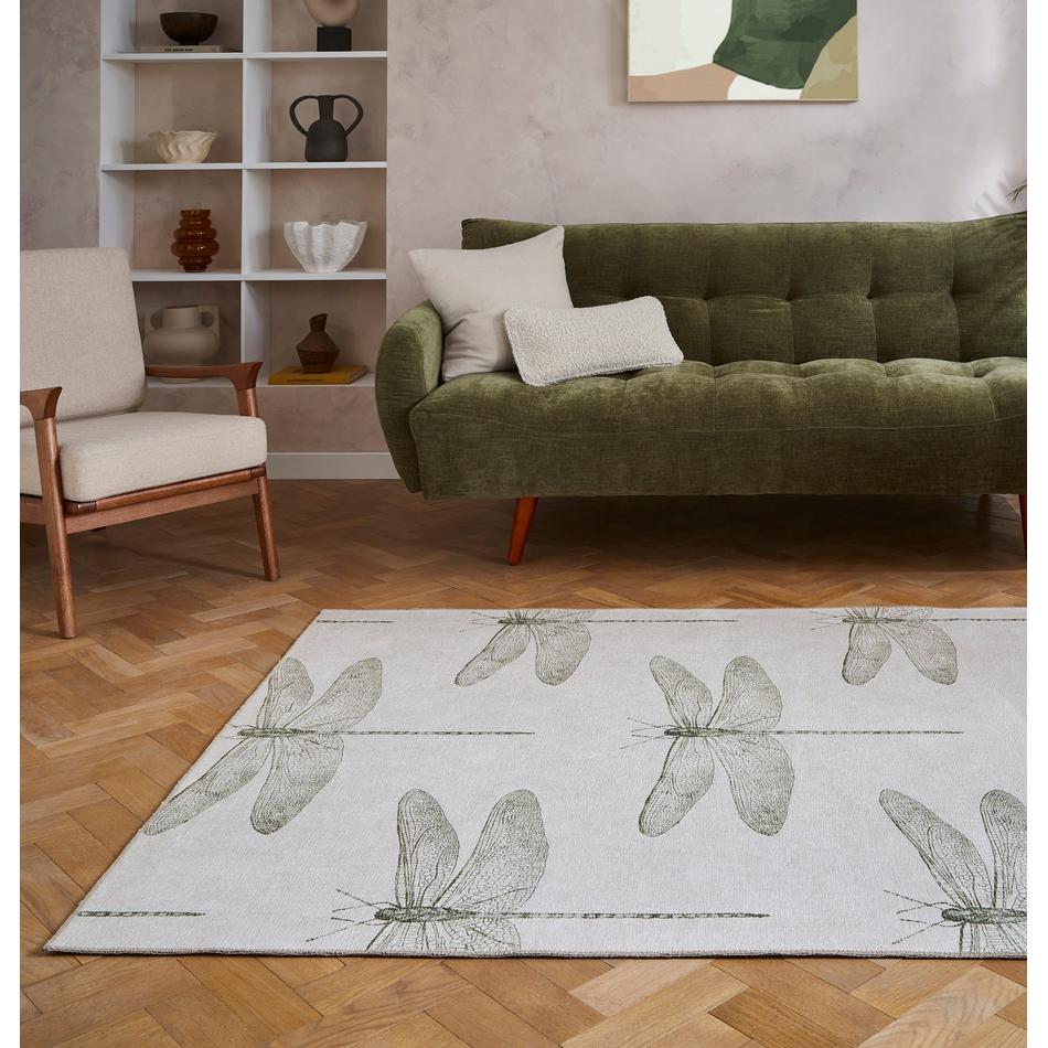 The Harlequin Demoiselle Fern Washable Rug embodies elegant naturalism and contemporary minimalism, featuring a detailed dragonfly motif delicately rendered in Fern, Sage, and Olive tones. Its composition brings a sense of calm and organic refinement, making it ideal for serene living rooms, bedrooms, and garden-view interiors.