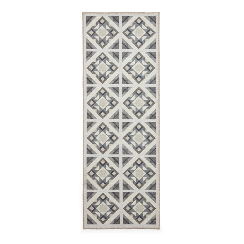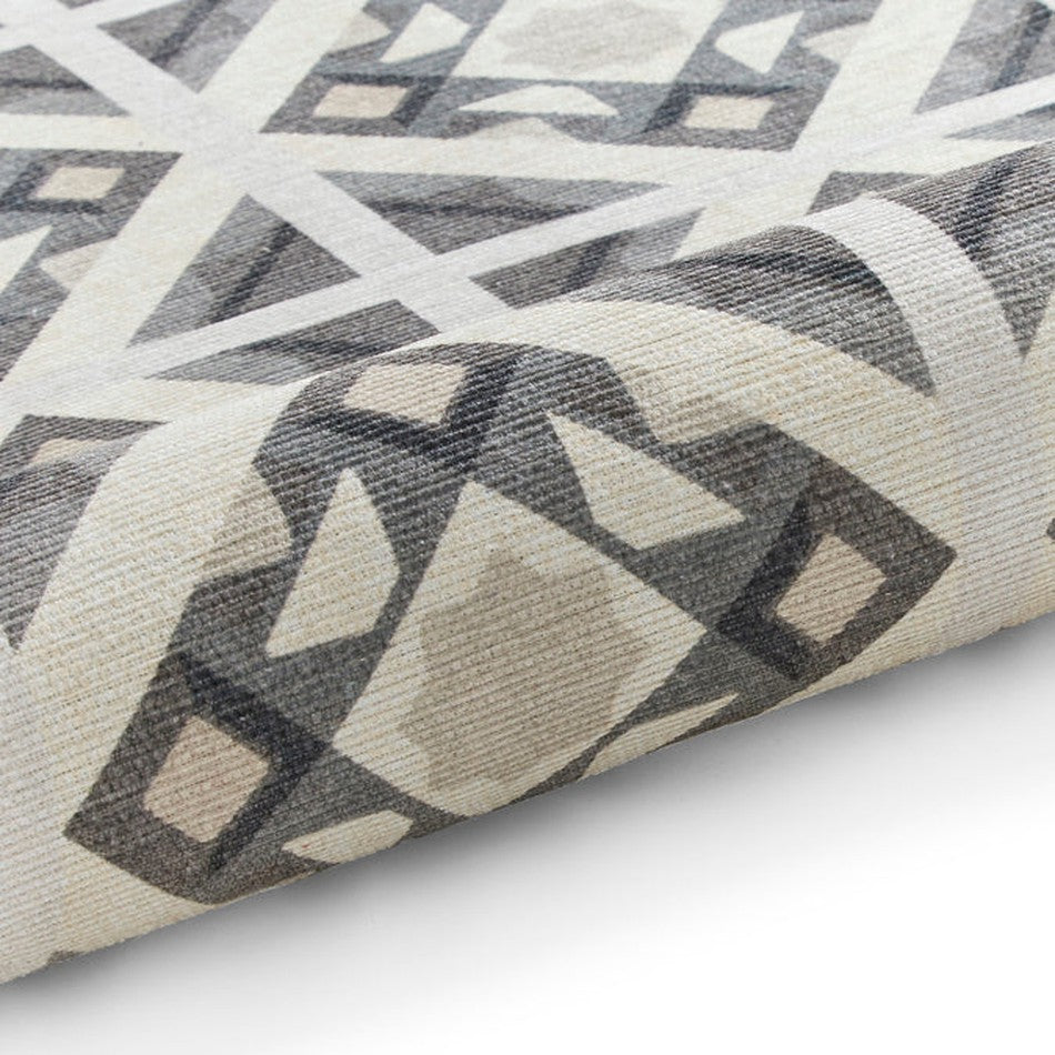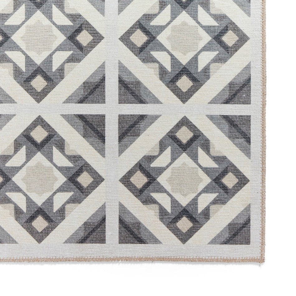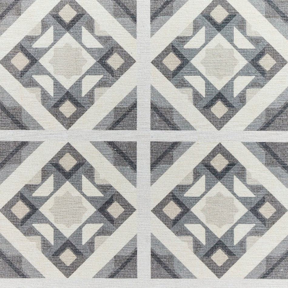 The Washable Victoria H1187 Grey/Beige Rug showcases a modern reinterpretation of classic tiled patterns, featuring a diamond lattice and star motif that blends vintage charm with contemporary elegance. Crafted from mixed recycled polyester in a digitally printed flatweave, it delivers detailed precision, a smooth texture, and a refined low-profile surface while promoting the use of sustainable materials. Made in Turkey using advanced digital printing technology, it offers exceptional pattern clarity and durability. With a 0.2cm slim pile height, it sits neatly under furniture, making it a versatile and eco-conscious choice for modern interiors. The integrated anti-slip backing enhances safety, stability, and adds an extra layer of practicality for everyday use.