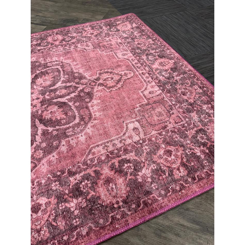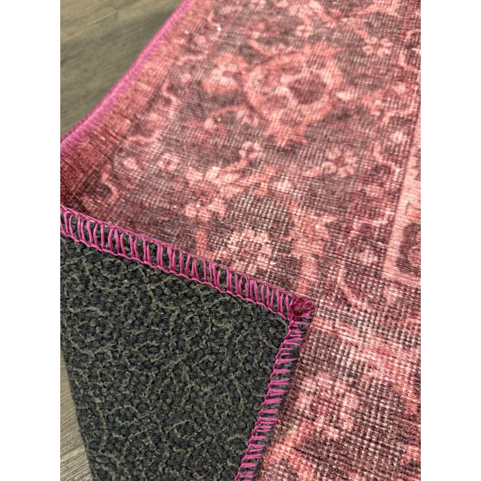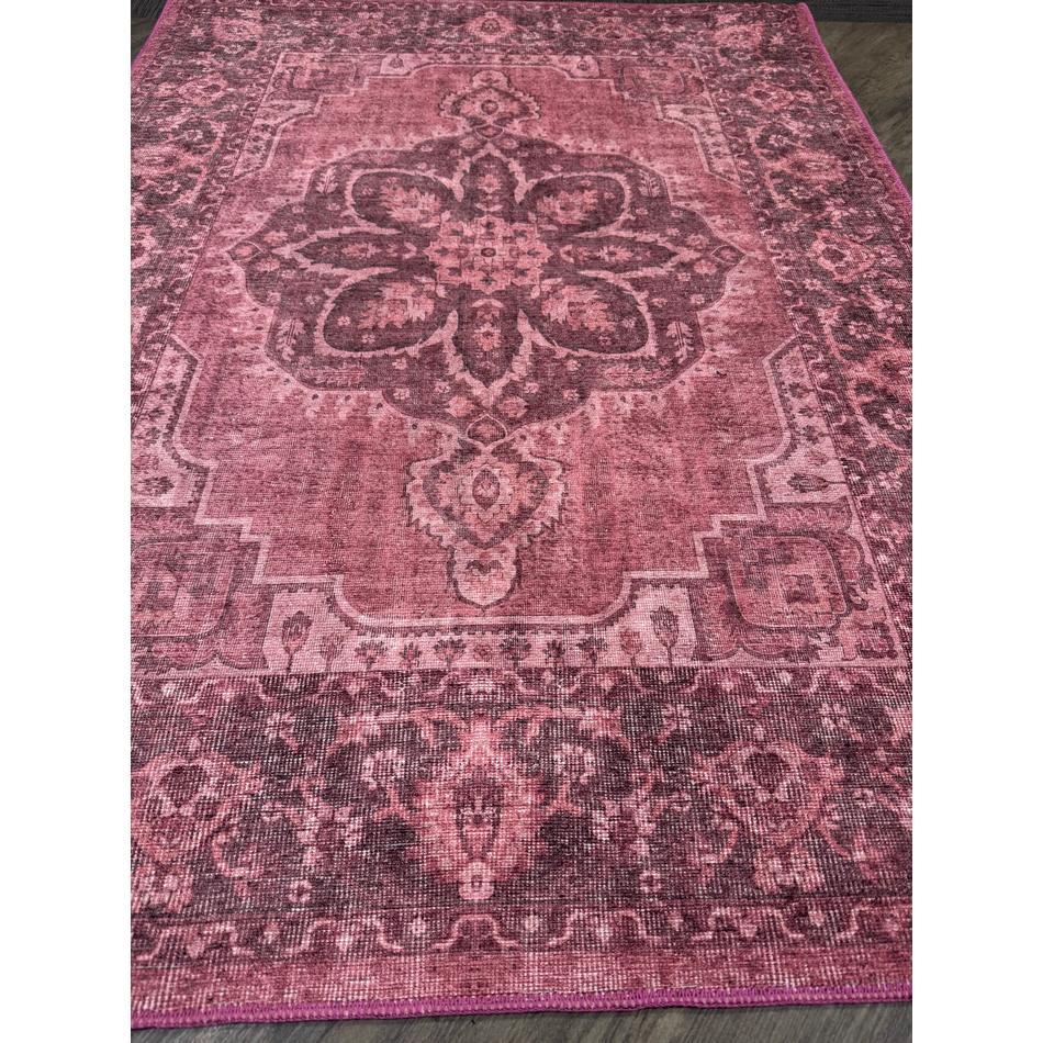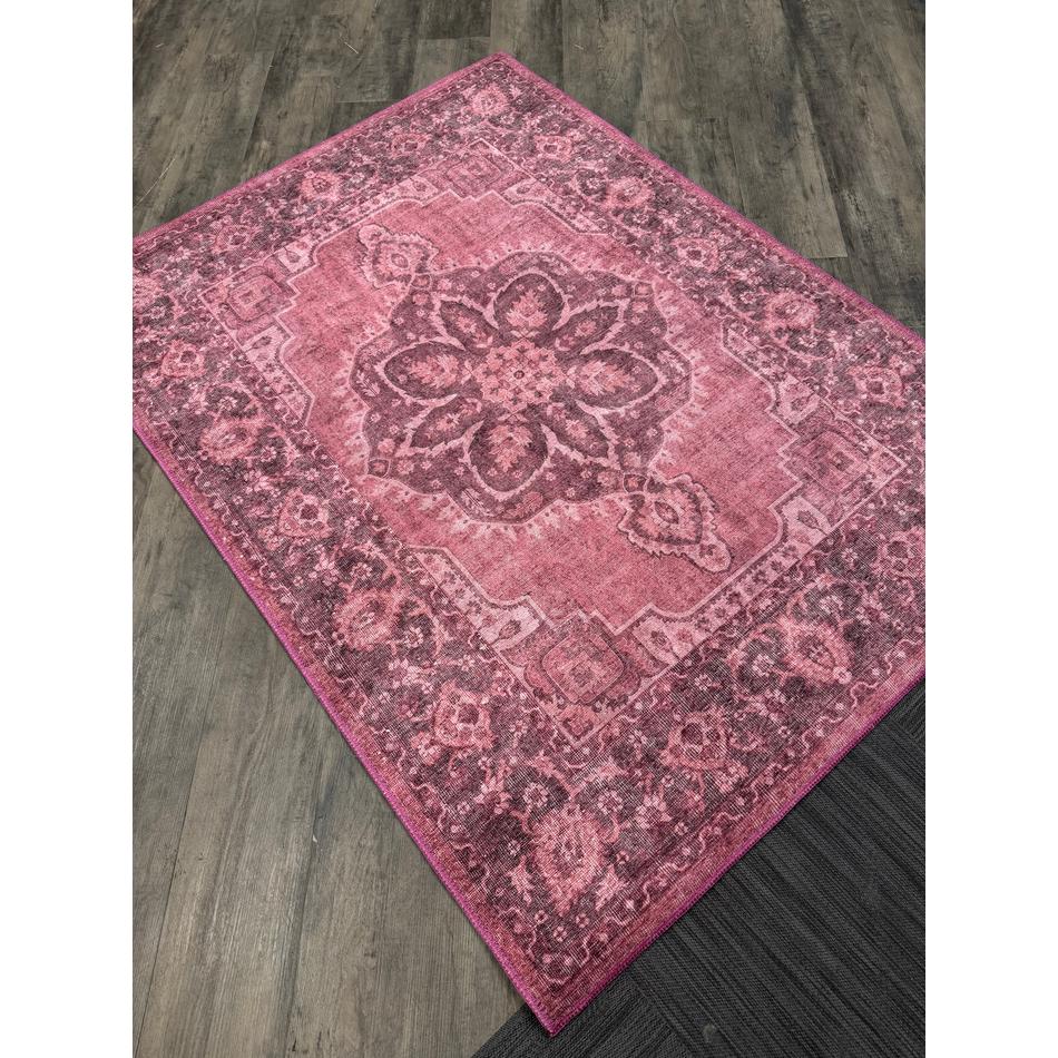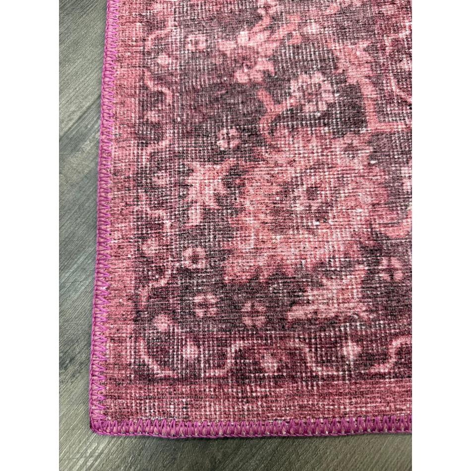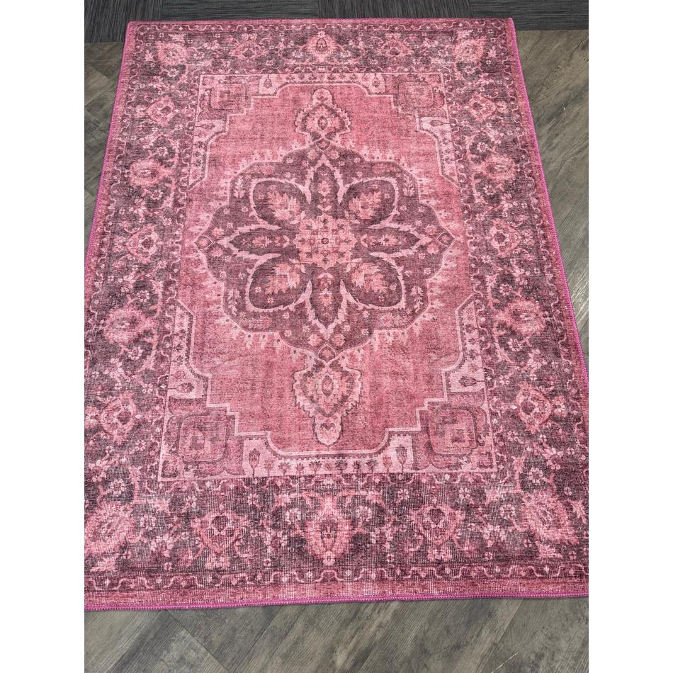 The Washable Zahra S0063 Vintage Rose Rug delivers a perfect fusion of heritage design and modern convenience. Crafted from digitally printed polyester with a 0.2 cm lightweight flatweave pile, it features an anti-slip backing and is fully machine washable, making it a practical choice for high-traffic areas and pet-friendly homes. The intricate medallion and floral border pattern — presented in tones of Vintage Rose, Wine Burgundy, Plum Brown, Soft Blush Pink, and Faded Ivory, complemented by a pink-purple stitched edge — creates a richly layered vintage aesthetic with a naturally distressed finish. With its smooth, low-profile surface and easy-care design, Zahra brings timeless character to modern living.