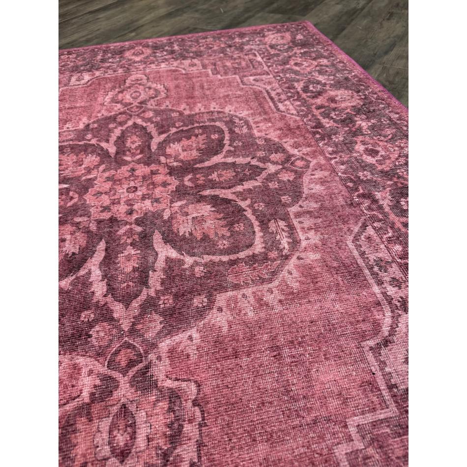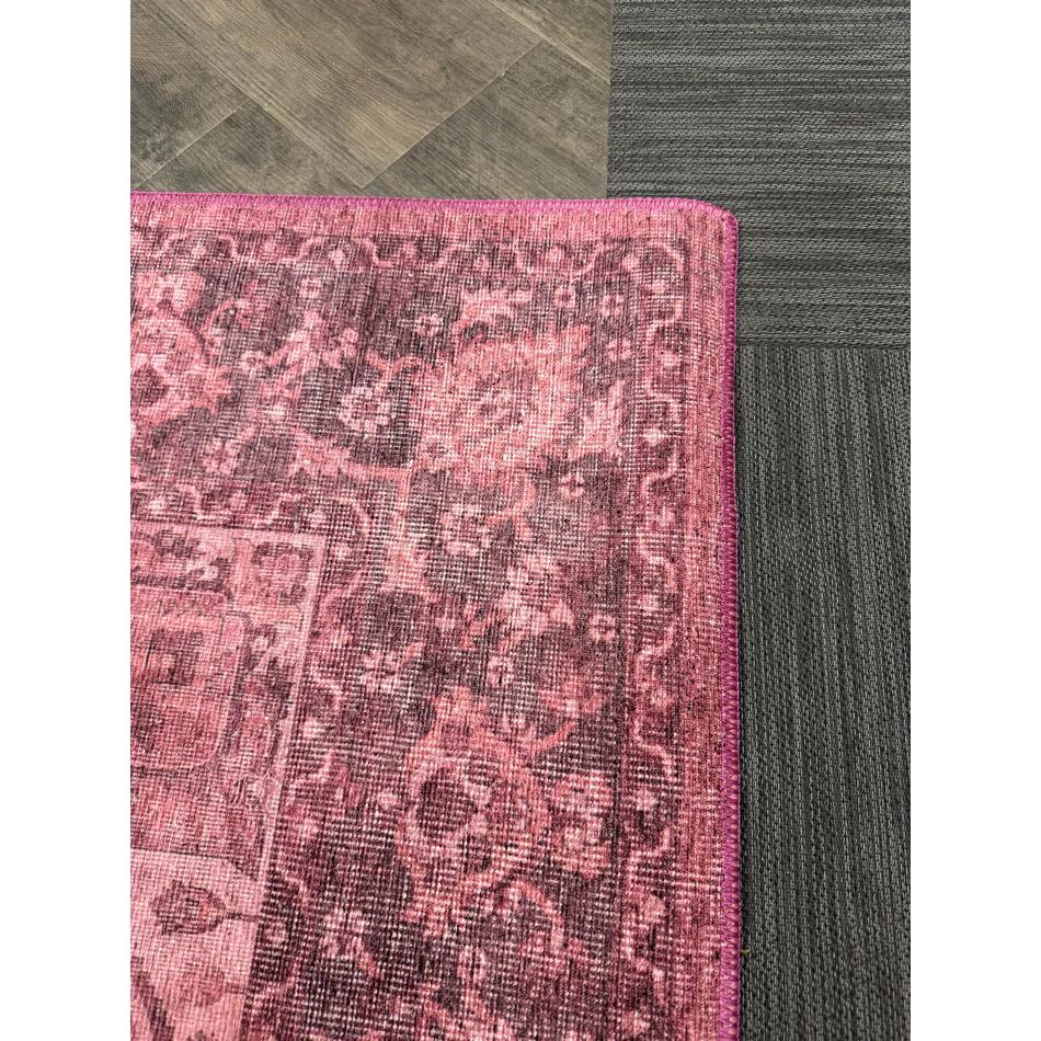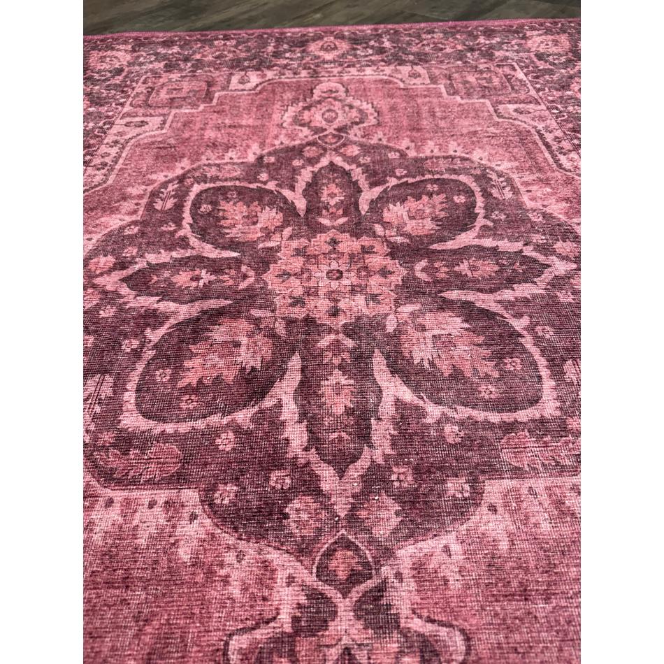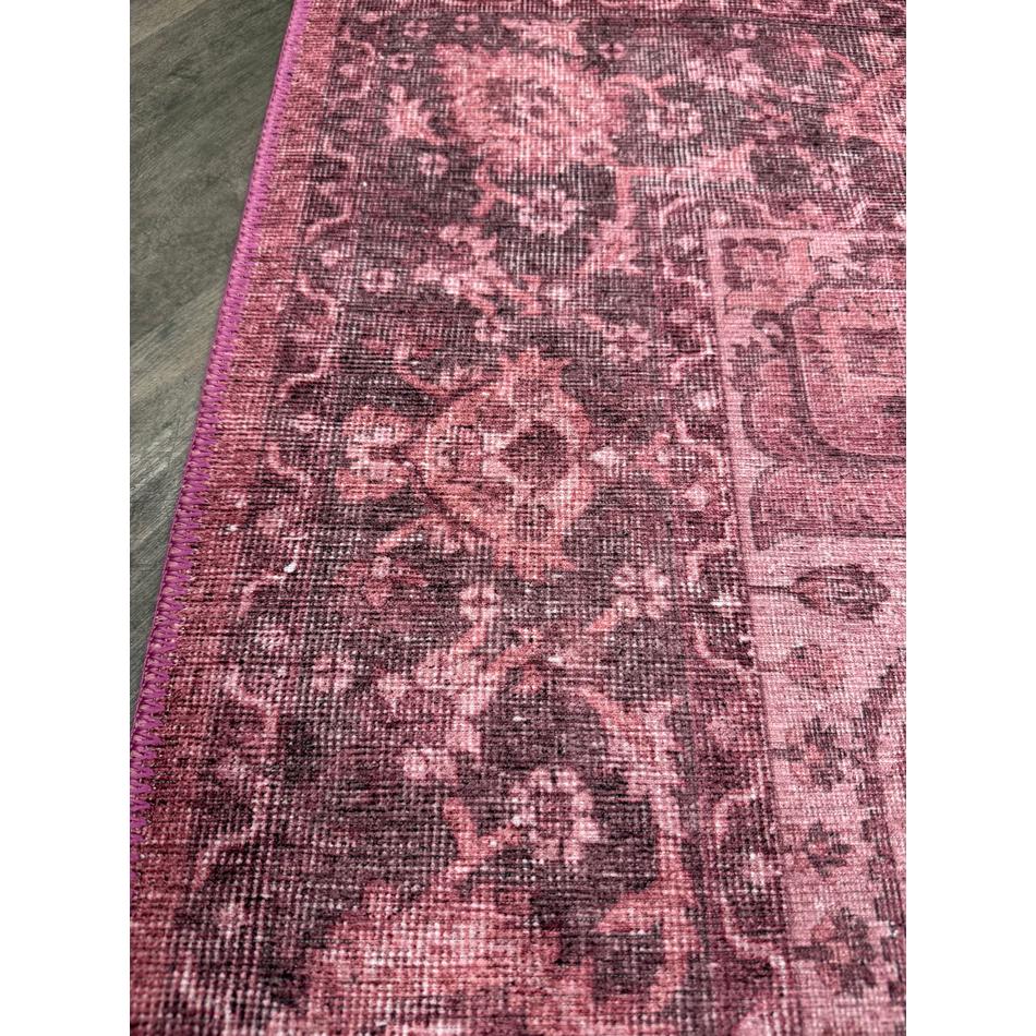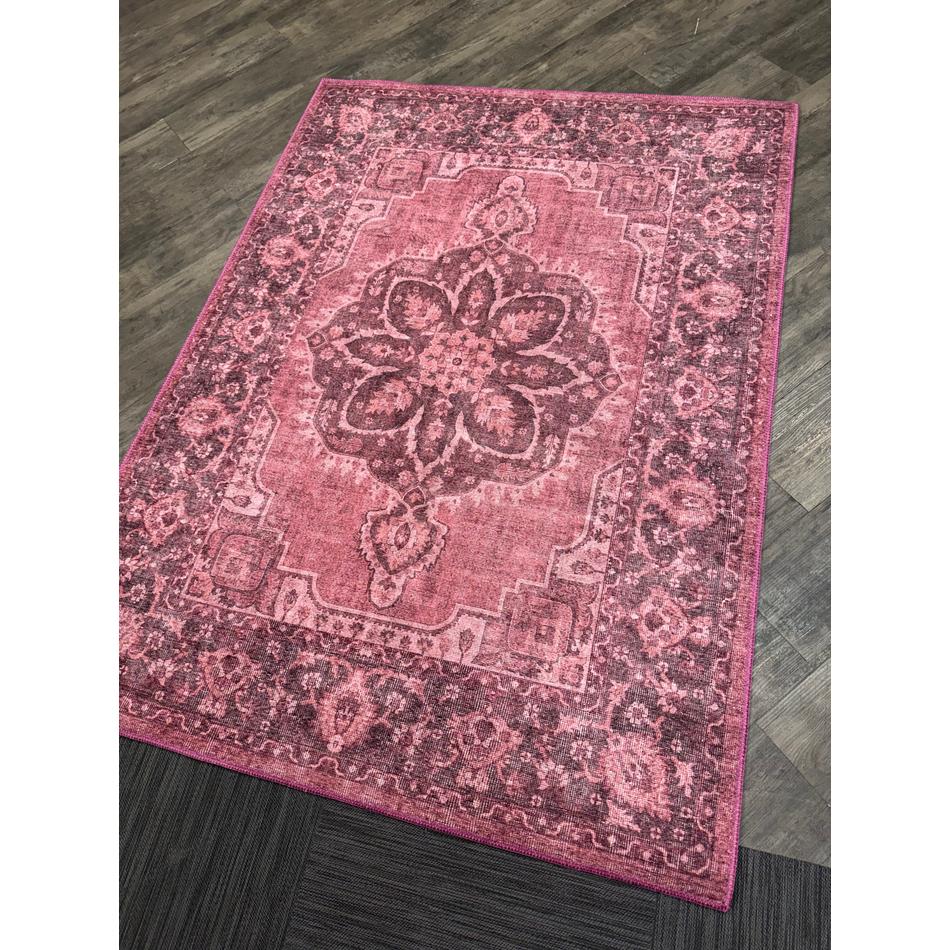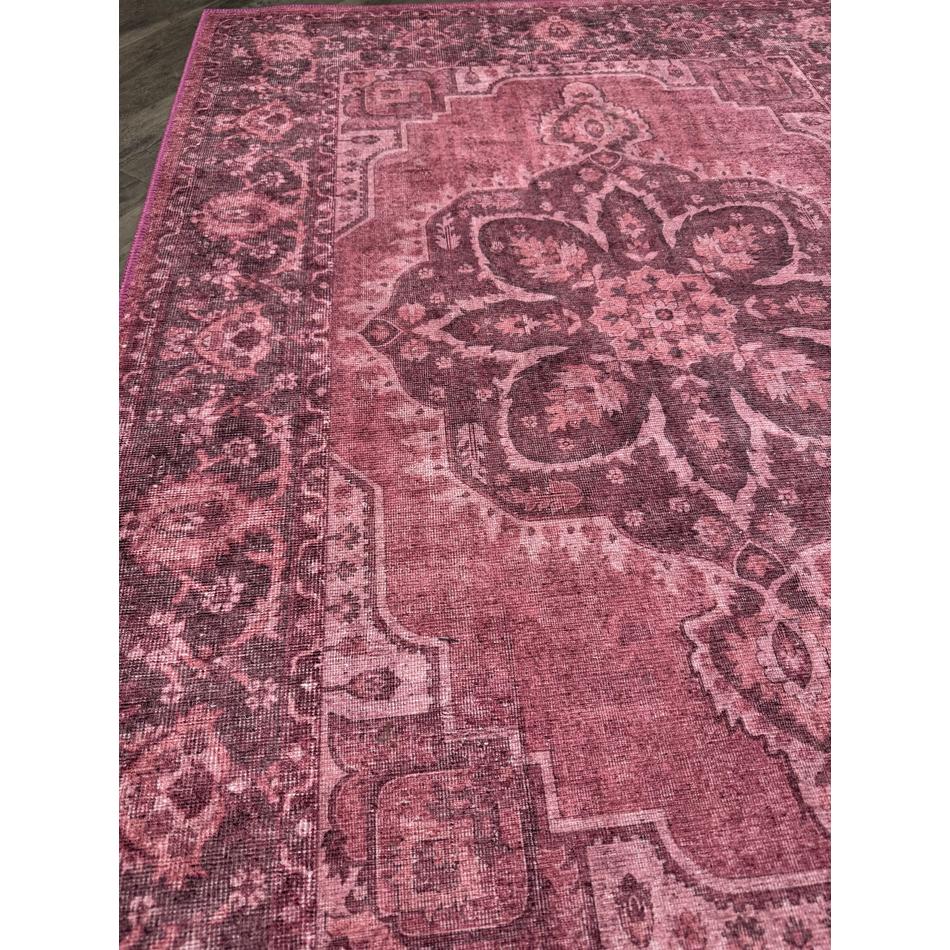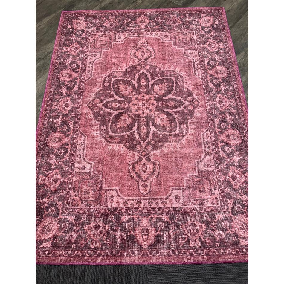 The Washable Zahra S0063 Vintage Rose Rug delivers a perfect fusion of heritage design and modern convenience. Crafted from digitally printed polyester with a 0.2 cm lightweight flatweave pile, it features an anti-slip backing and is fully machine washable, making it a practical choice for high-traffic areas and pet-friendly homes. The intricate medallion and floral border pattern — presented in tones of Vintage Rose, Wine Burgundy, Plum Brown, Soft Blush Pink, and Faded Ivory, complemented by a pink-purple stitched edge — creates a richly layered vintage aesthetic with a naturally distressed finish. With its smooth, low-profile surface and easy-care design, Zahra brings timeless character to modern living.