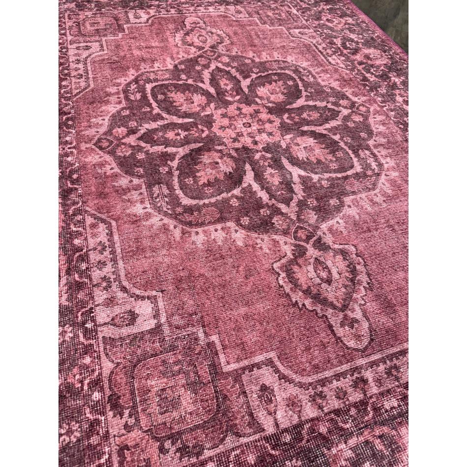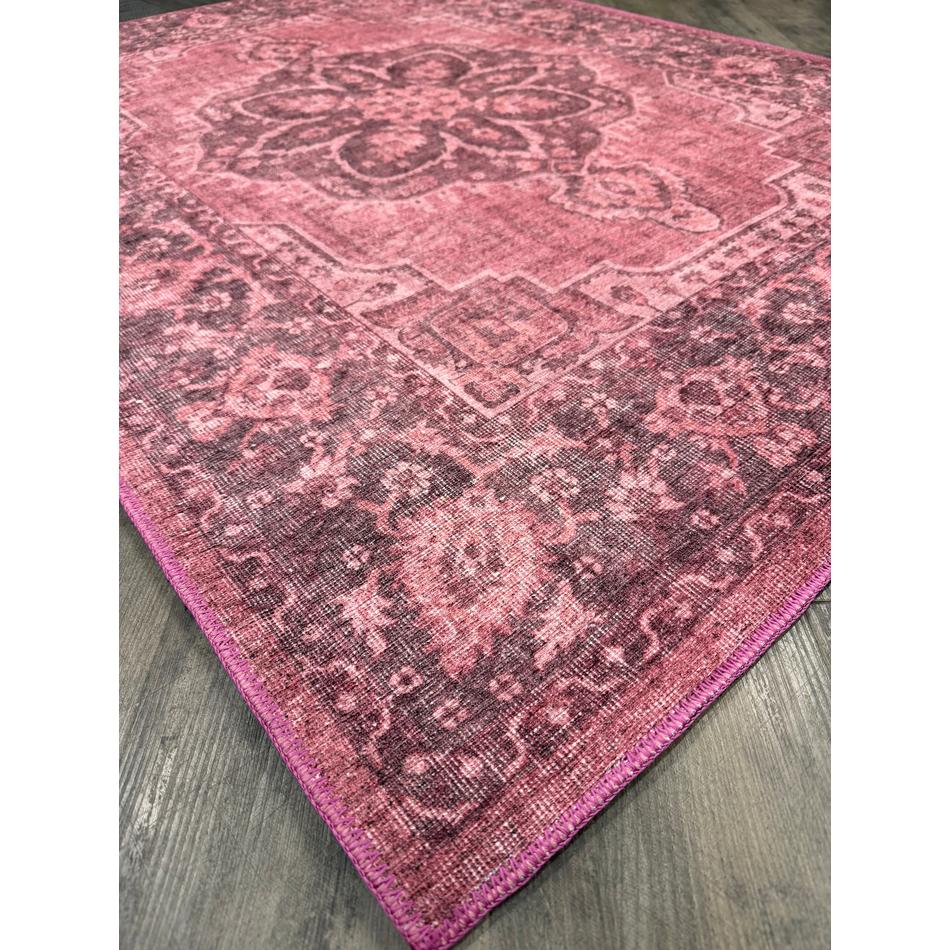 The Washable Zahra S0063 Vintage Rose Rug combines traditional vintage elegance with modern washable practicality. Digitally printed on soft, lightweight polyester, it showcases a timeless medallion and border design in layered tones of Vintage Rose, Wine Burgundy, Plum Brown, Soft Blush Pink, and Faded Ivory, finished with a contrasting pink-purple stitched edge. The low-profile 0.2 cm flatweave pile is both foldable and machine washable, offering effortless maintenance without compromising on style. Designed in Turkey, Zahra balances classic detailing with everyday functionality — ideal for busy homes that still value heritage-inspired charm.