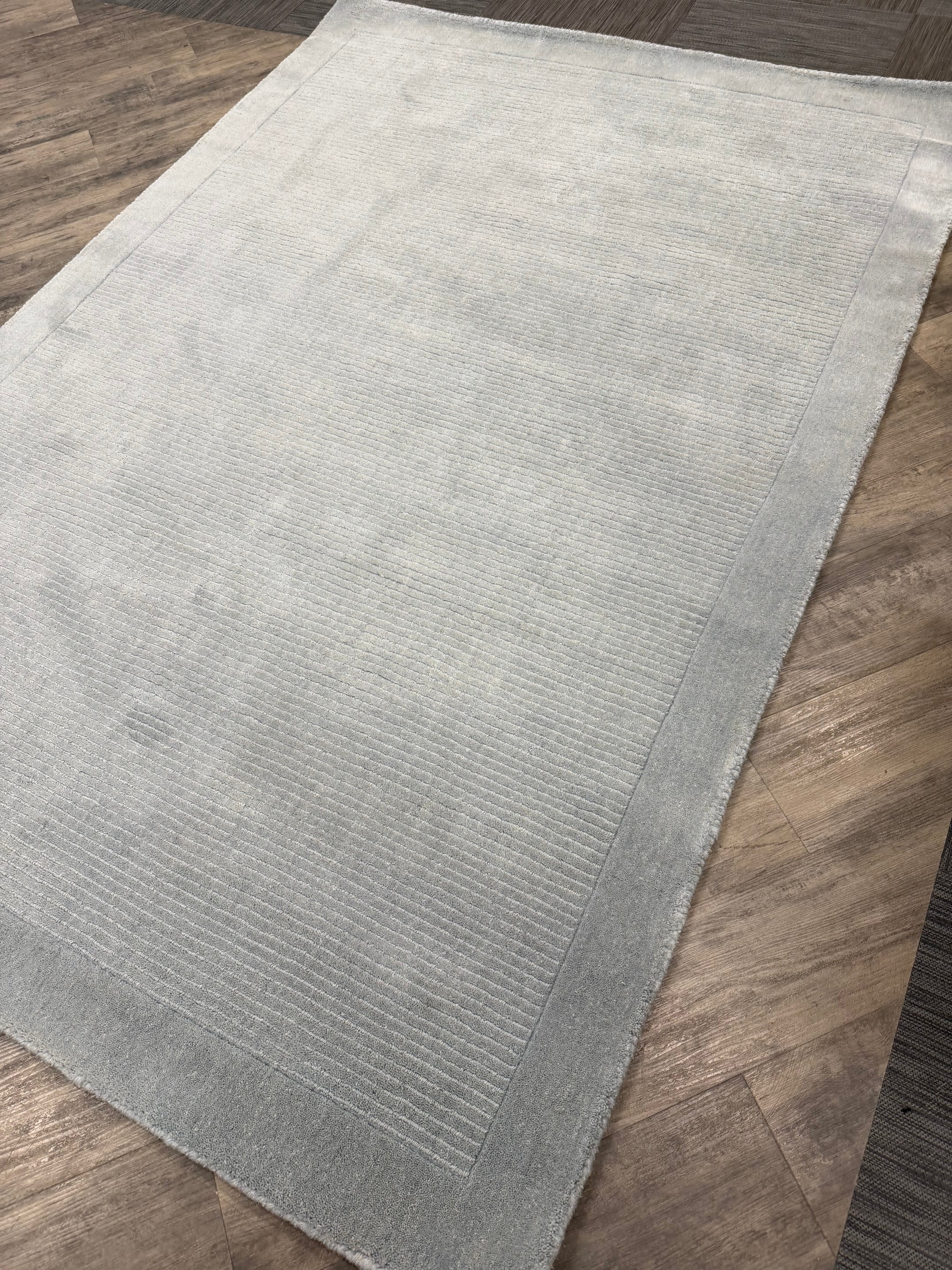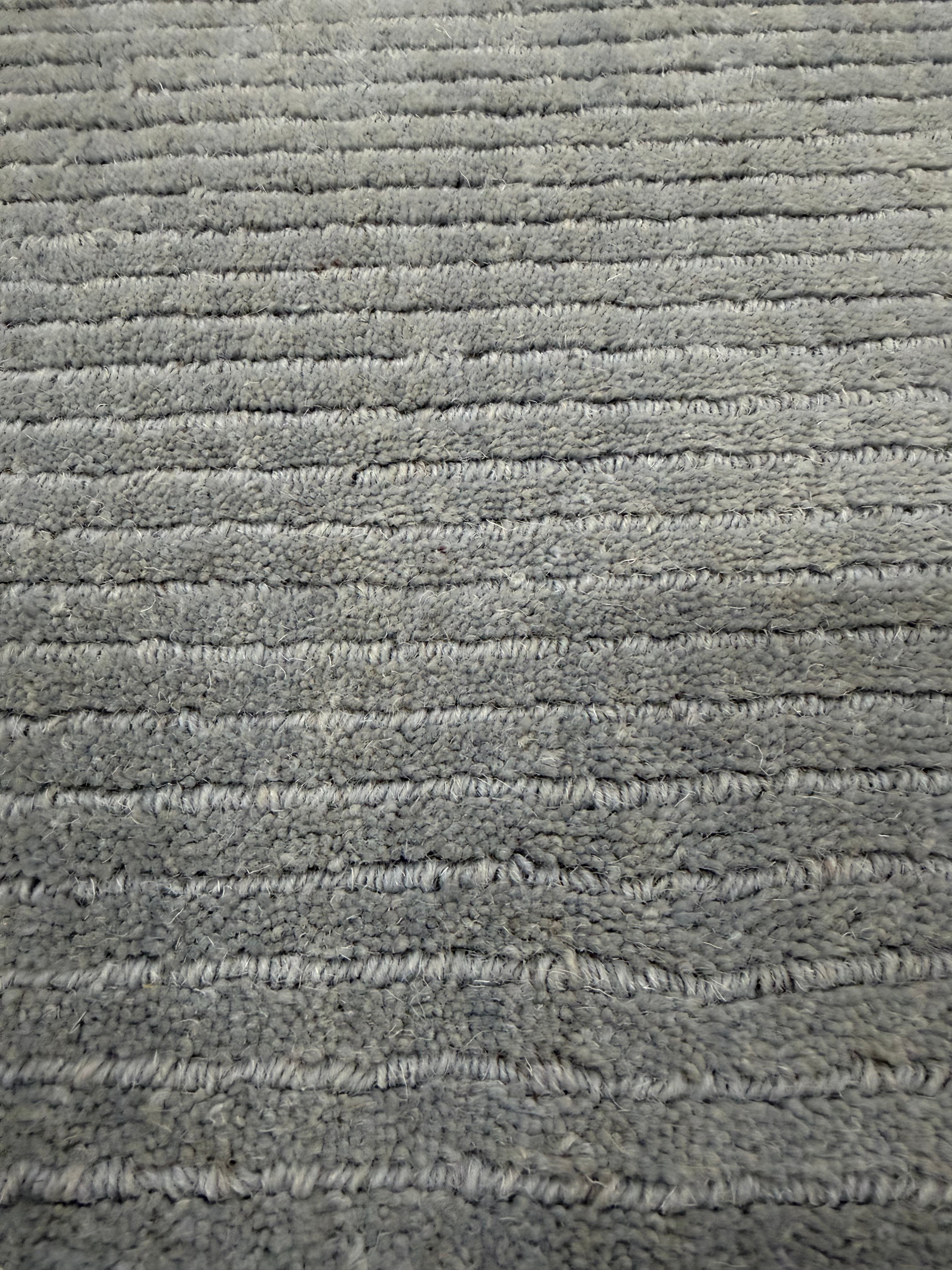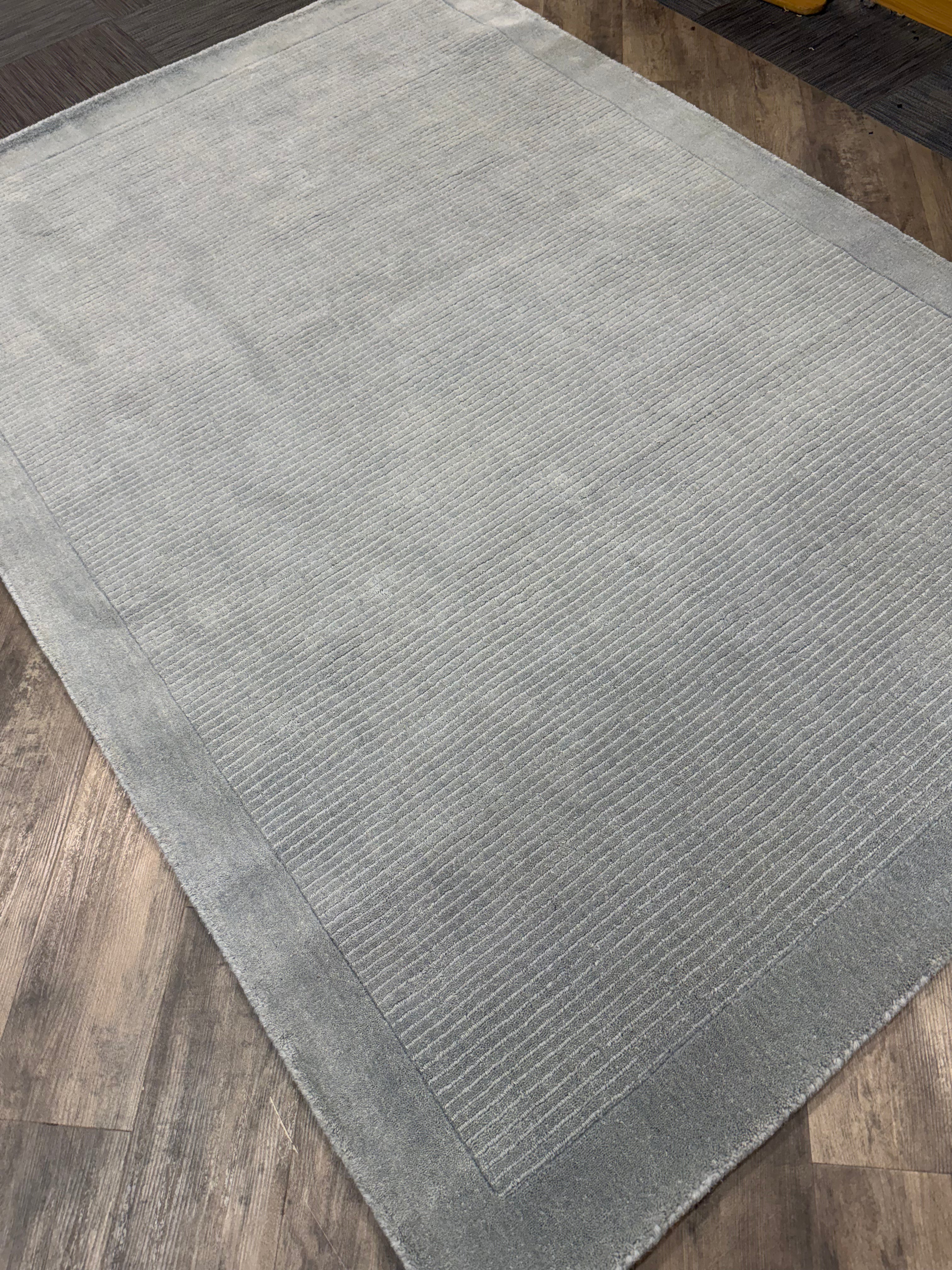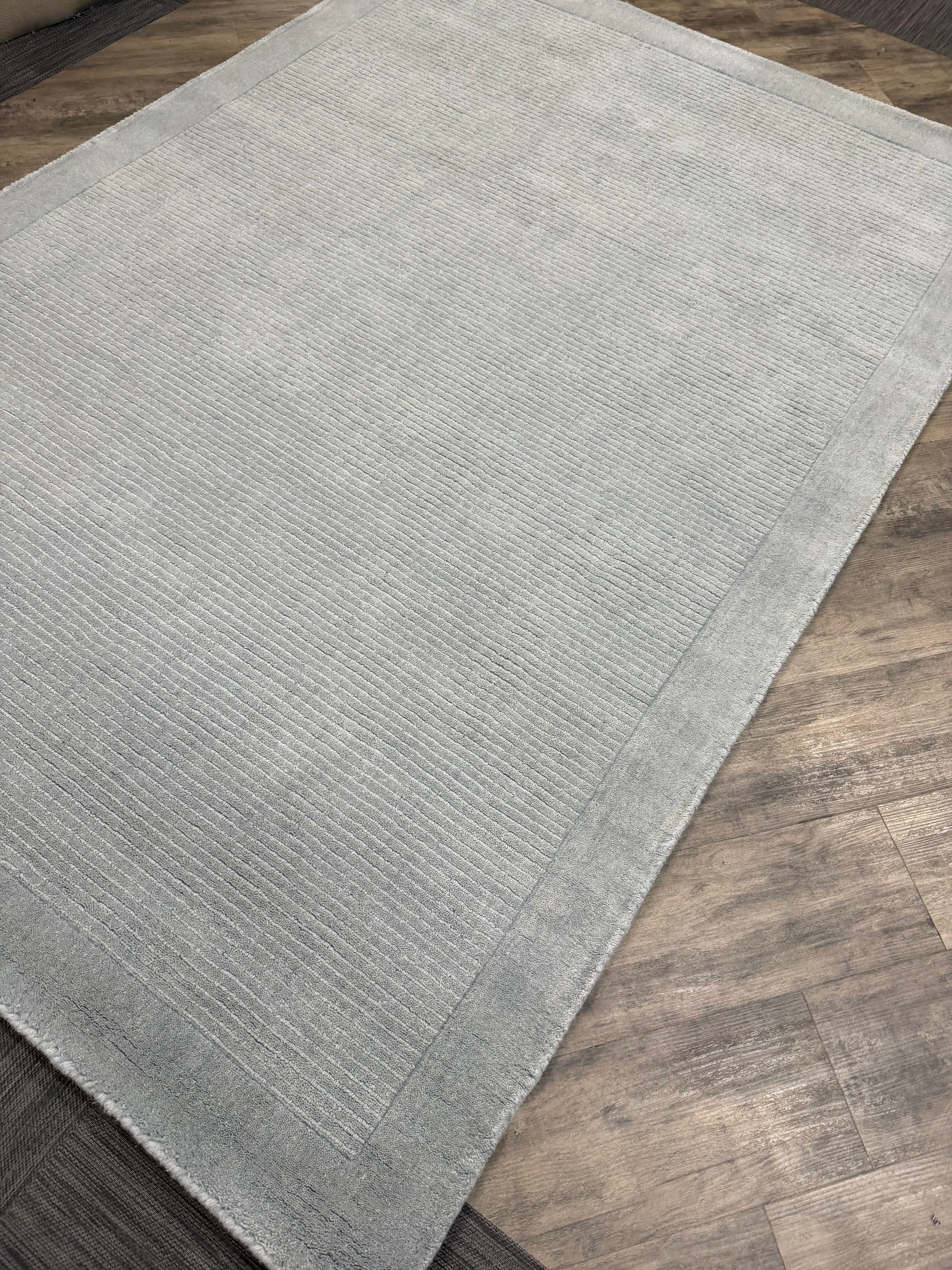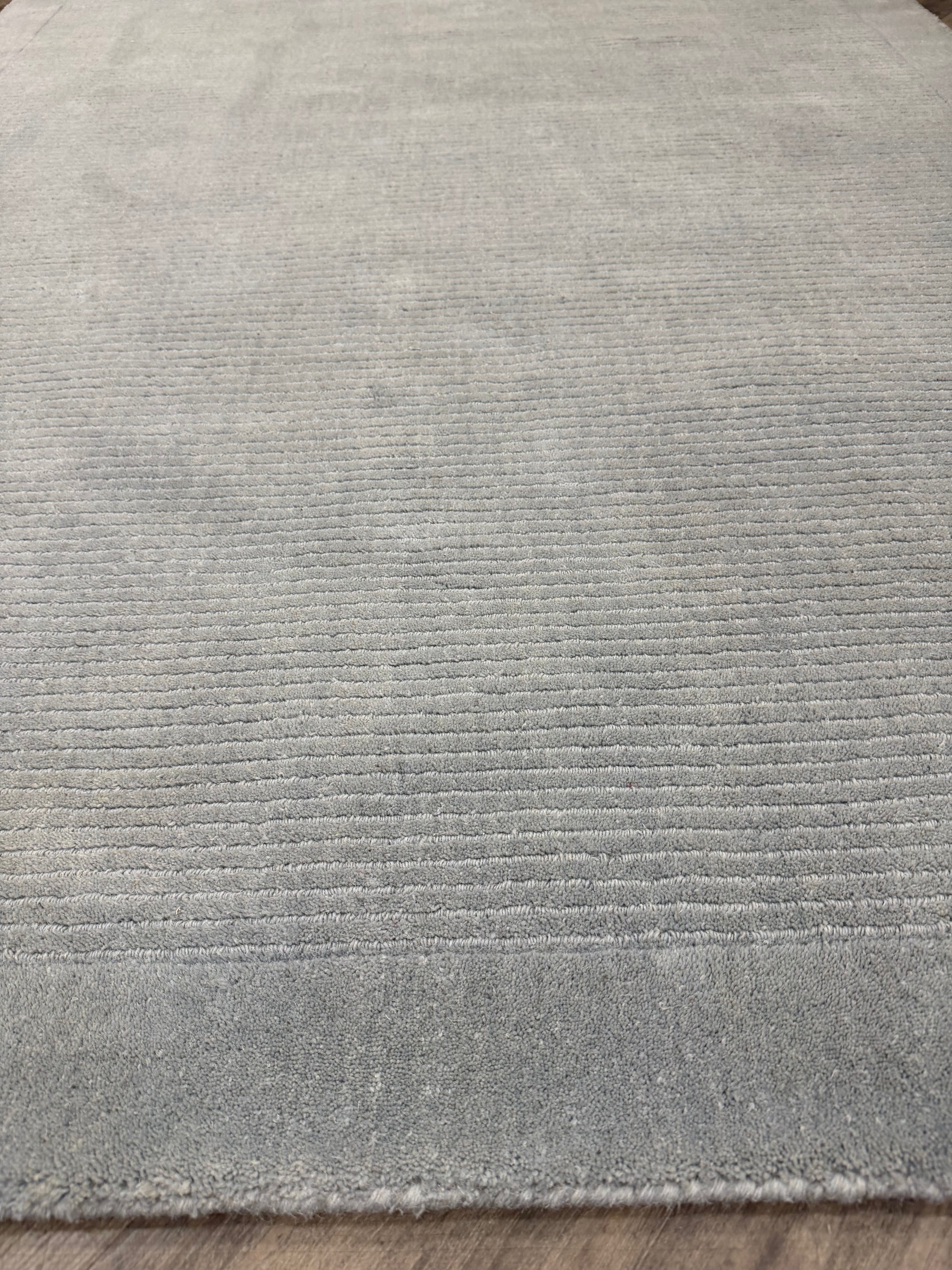 This Duck Egg shade brings a soft, serene elegance – ideal for creating a peaceful atmosphere in bedrooms or other tranquil spaces. Woven by hand in India, the rug features a subtle striped centre with a contrasting, smooth-textured cut-pile border, giving it a refined, modern finish.