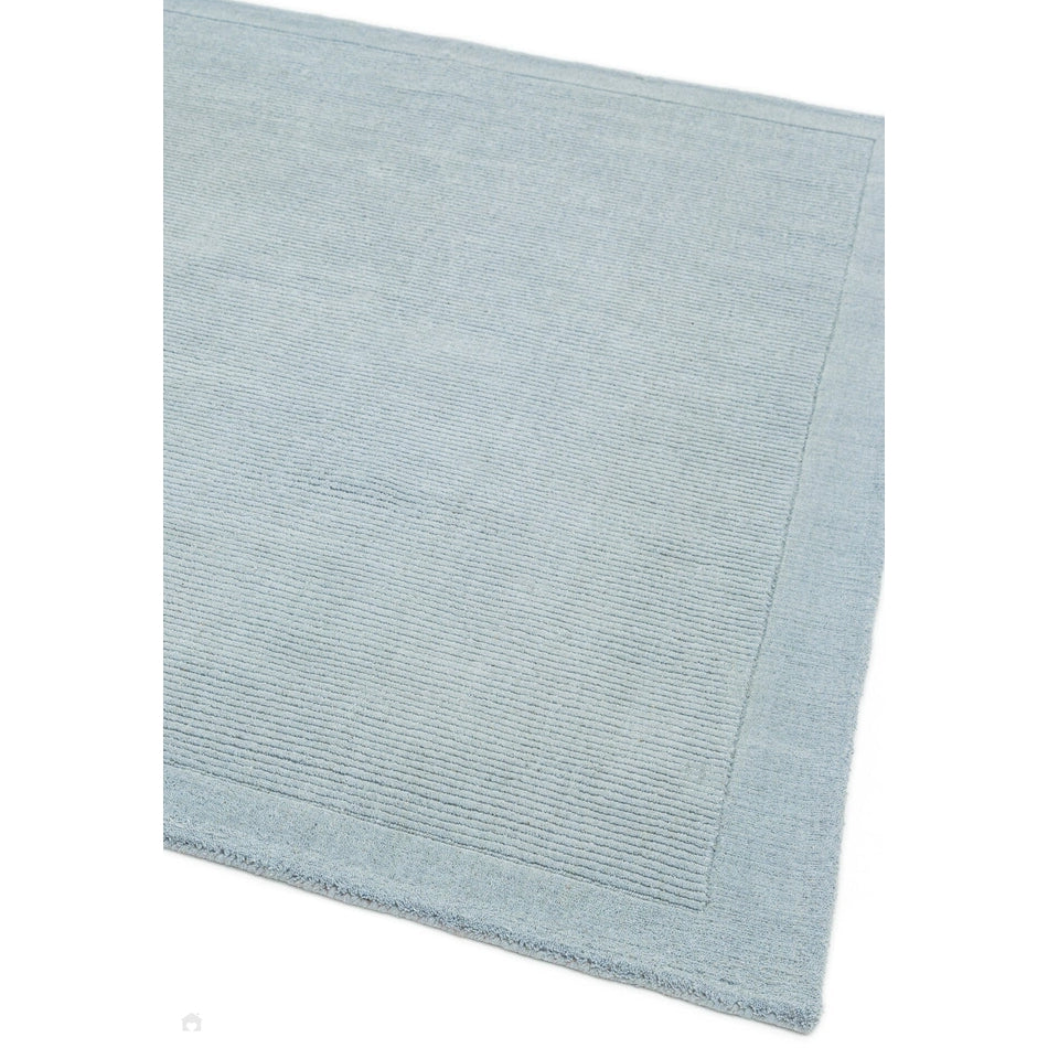 The York Plain Border Wool Duck Egg Runner showcases a subtle ribbed loop-pile centre framed by a smooth tonal border, enhancing its minimal design. Crafted from 100% wool, its cool Duck Egg tone brings light and balance to calm, contemporary interiors.